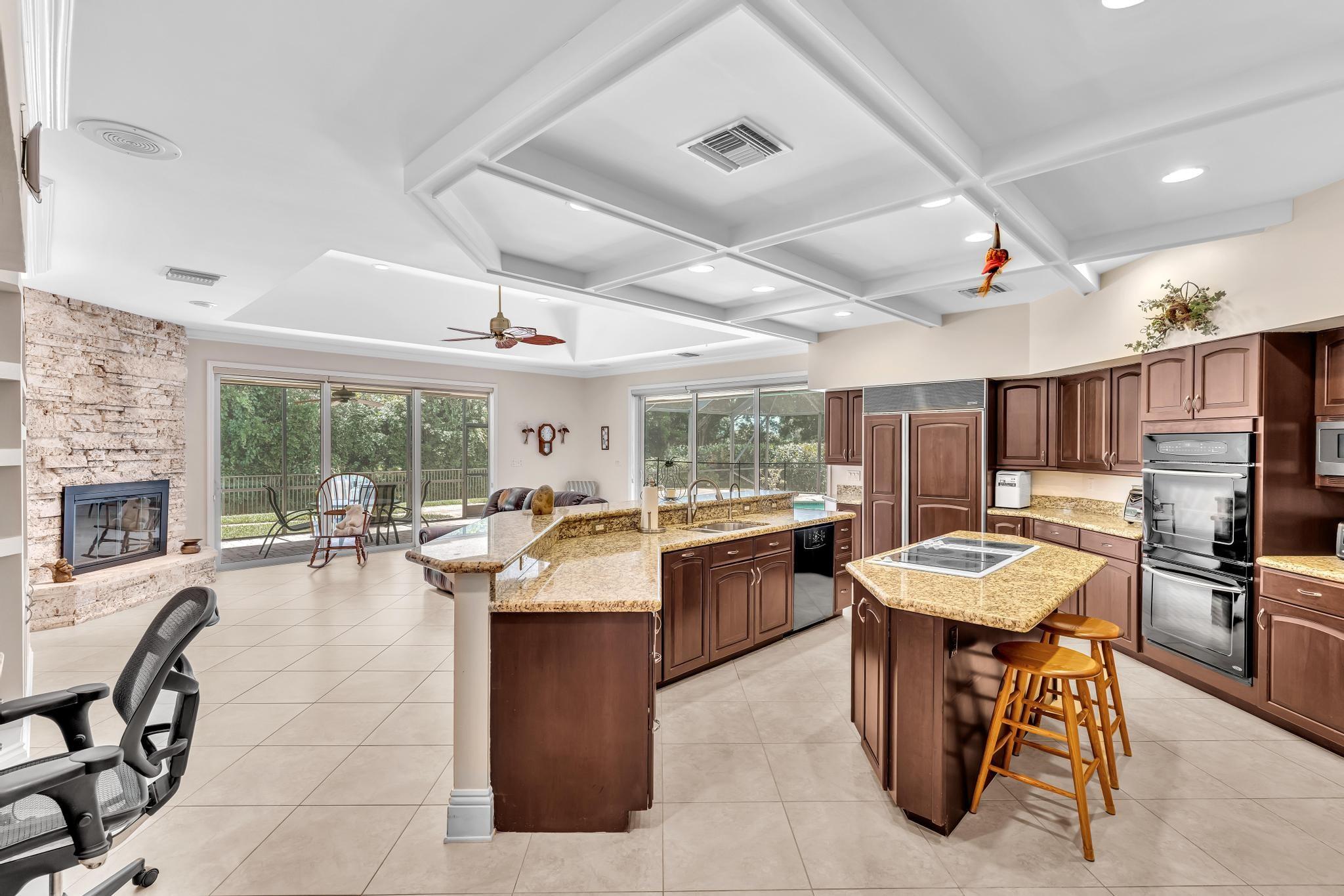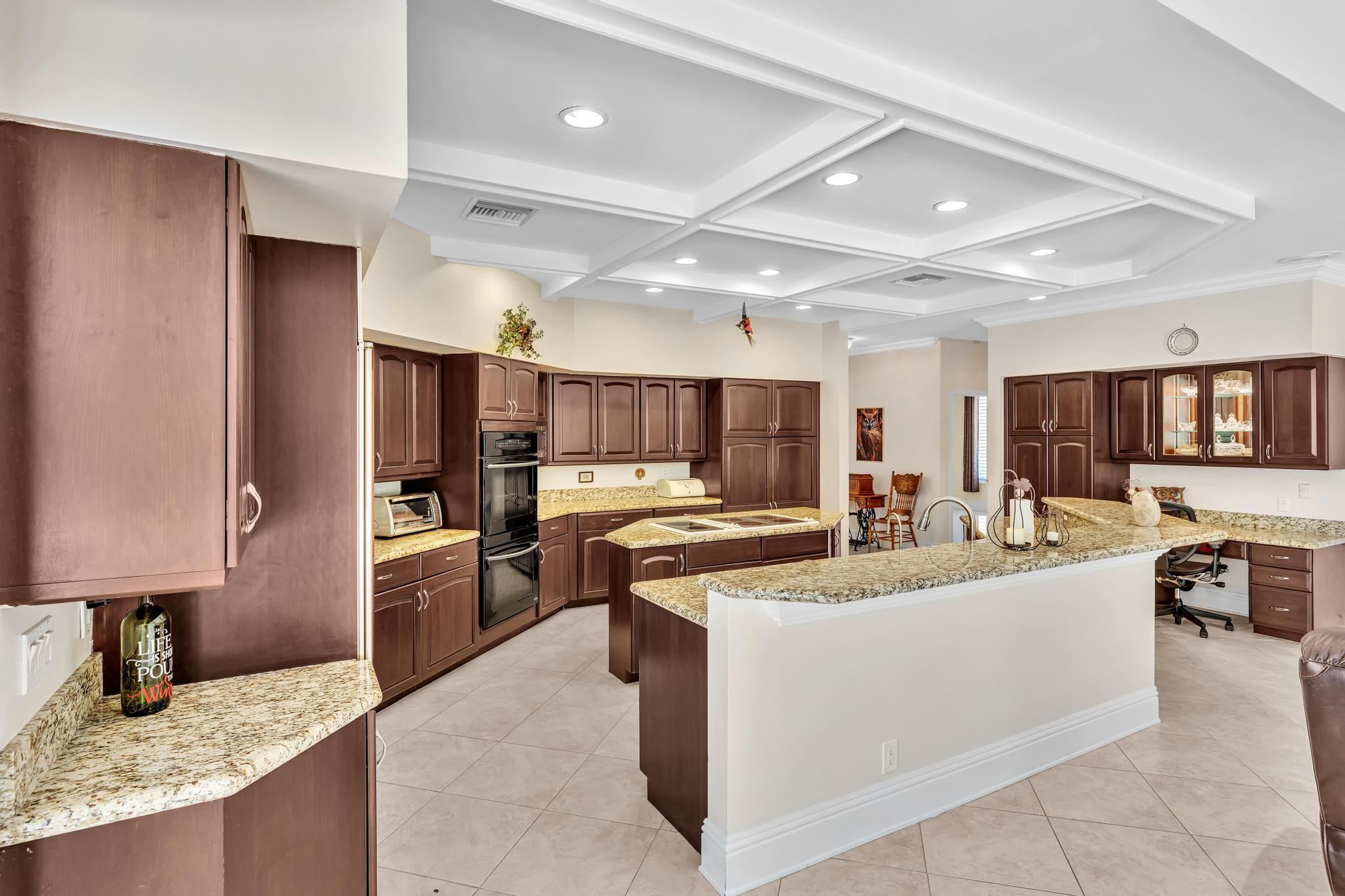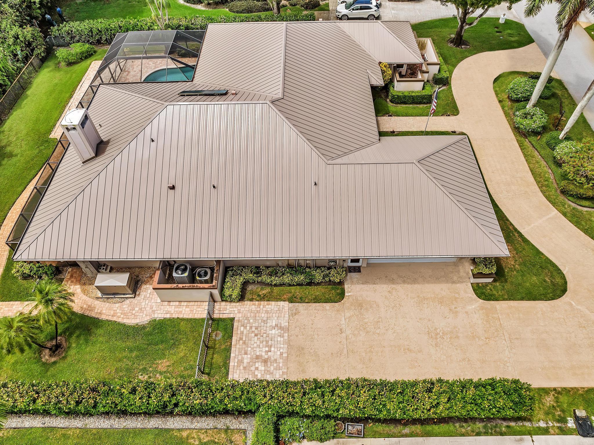 Gorgeous 3-bedroom home on oversized lot that backs the golf course for privacy, must be seen. Huge bedrooms, option for a 4th bedroom by enclosing dining area, or creating access to den off the garage, beautiful kitchen, wood cabinetry with granite, center islands, Subzero refrigerator, large screened pool/spa with surrounding brick paver patio, newer metal roof (2023), impact windows and a newer whole house generator, updated porcelain flooring throughout, air-conditioned den off the garage, oversize two car garage with storage closets, laundry room with storage cabinets. Walk in closets in master bedroom with built in organizers, large family room with fireplace and built-in entrainment center, cedar closet off laundry room, if you need a home with lots of storage and space, this is it.