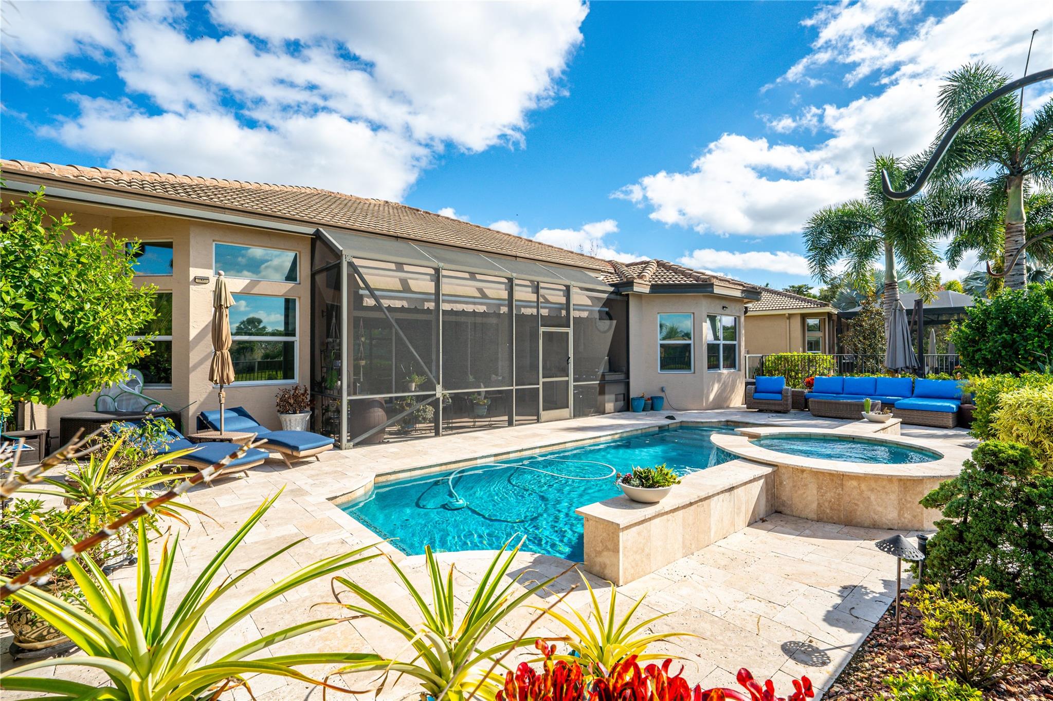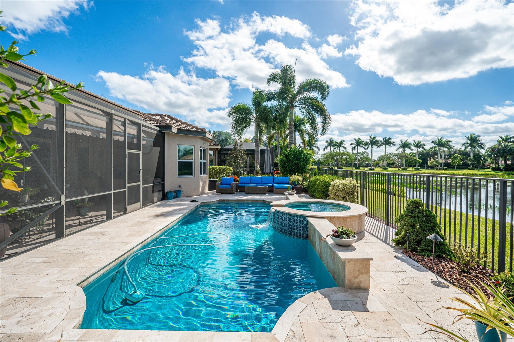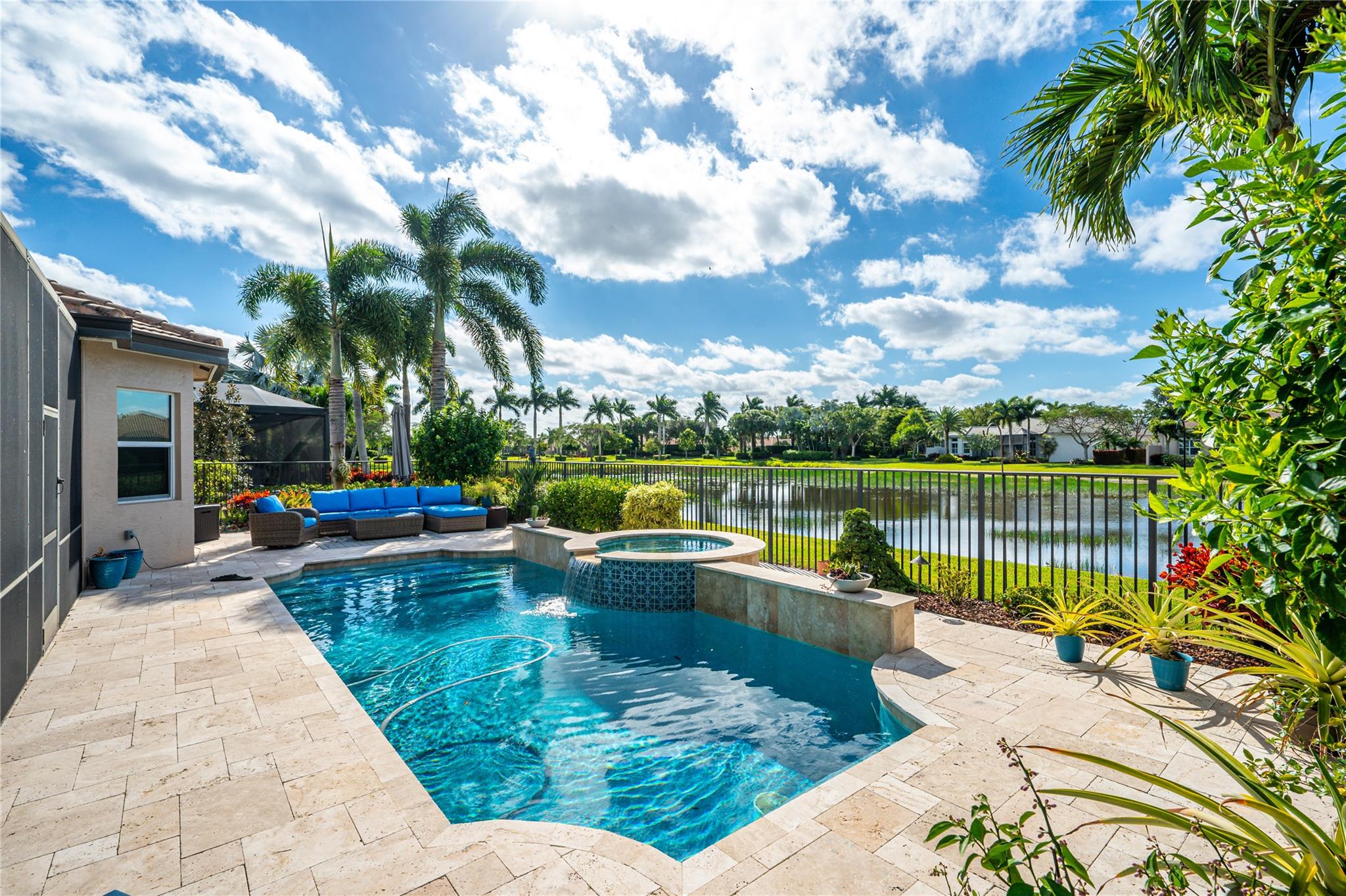 Look no further and welcome to paradise at Valencia Reserve in Boynton Beach. This showstopper has it all! The custom "Pamplona Grand" model is a lakefront estate boasting 4BR, 3BA, 3540sf and private heated (and salt chlorinated) pool & spa. A masterful floor plan includes designer finishes, decorator touches, marble and wood flooring, spacious gourmet chef's kitchen w/ gas range, double-oven, pull-outs, and ample storage. Meticulously maintained to perfection, showcasing light & bright spaces, expansive Owner's Suite, summer kitchen, extended covered patio. Impact windows, whole-home generator and 2-car garage compete this turnkey existence. Experience refined living in the exclusive, gated, active-adult community with clubhouse, cafe, tennis, pickleball, bocce, pools and fitness center.