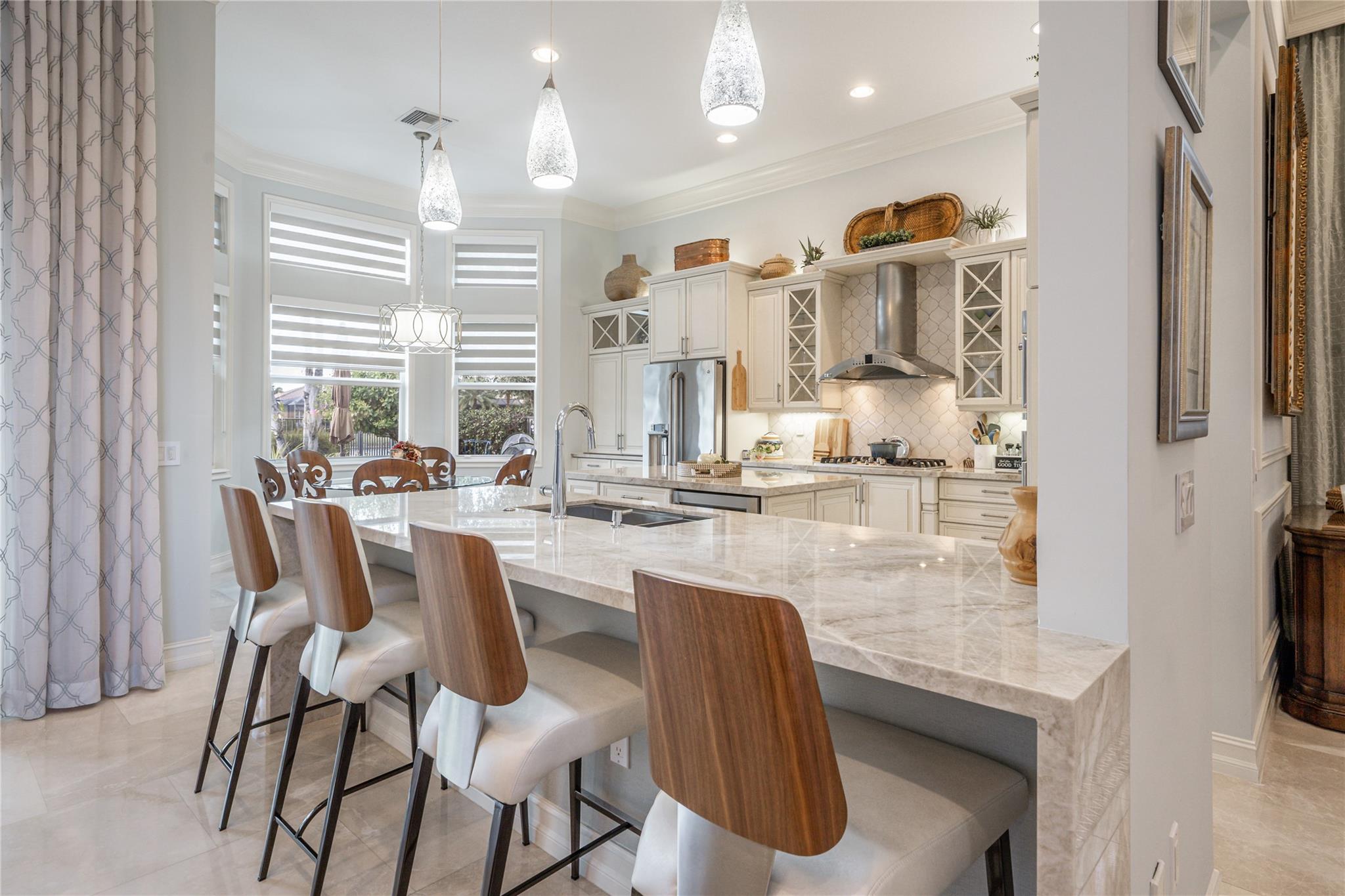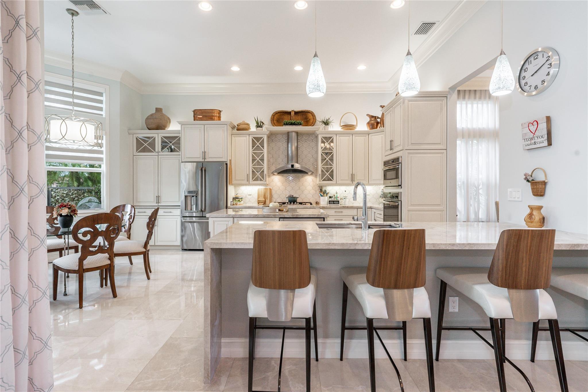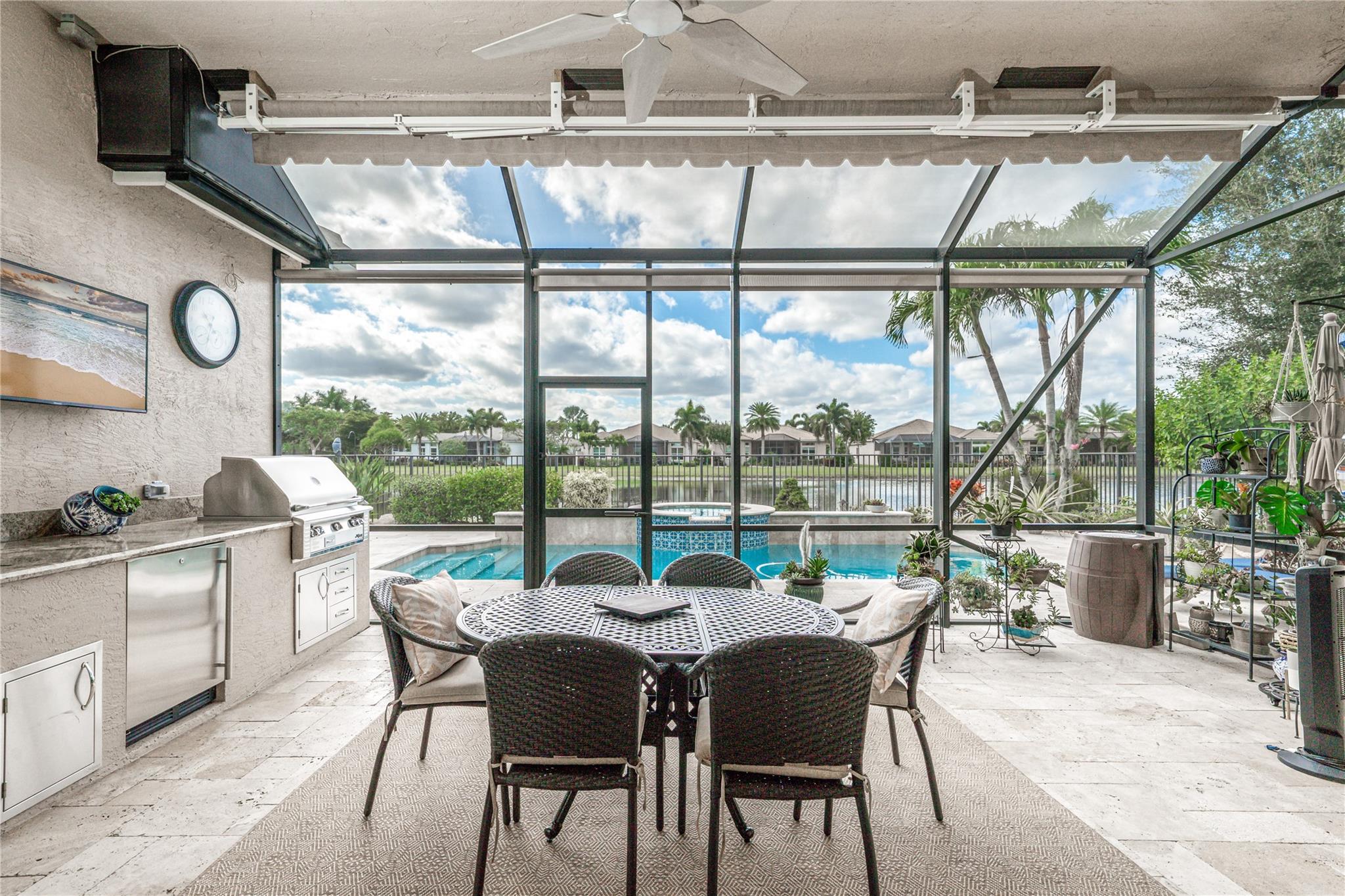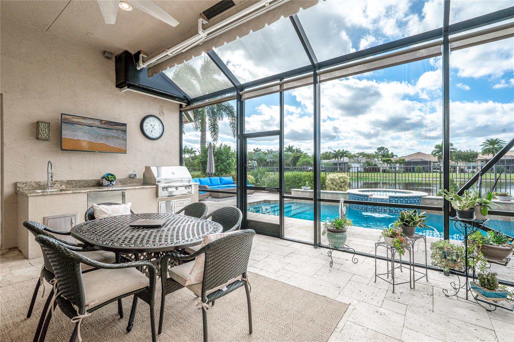 Look no further and welcome to paradise at Valencia Reserve in Boynton Beach. This showstopper has it all! The custom "Pamplona Grand" model is a lakefront estate boasting 4BR, 3BA, 3540sf and private heated (and salt chlorinated) pool & spa. A masterful floor plan includes designer finishes, decorator touches, marble and wood flooring, spacious gourmet chef's kitchen w/ gas range, double-oven, pull-outs, and ample storage. Meticulously maintained to perfection, showcasing light & bright spaces, expansive Owner's Suite, summer kitchen, extended covered patio. Impact windows, whole-home generator and 2-car garage compete this turnkey existence. Experience refined living in the exclusive, gated, active-adult community with clubhouse, cafe, tennis, pickleball, bocce, pools and fitness center.