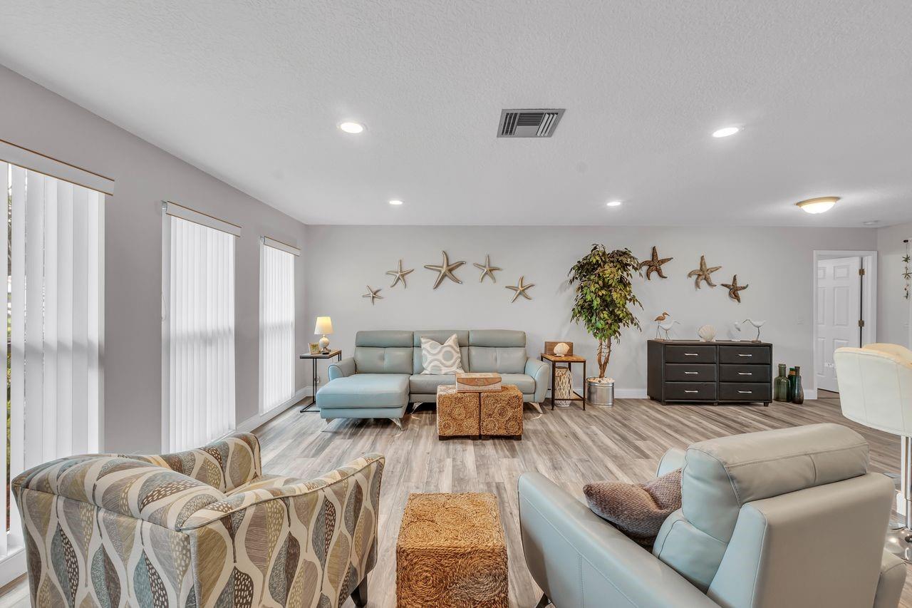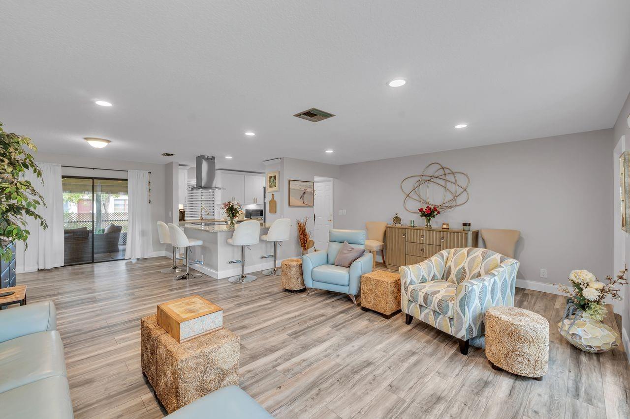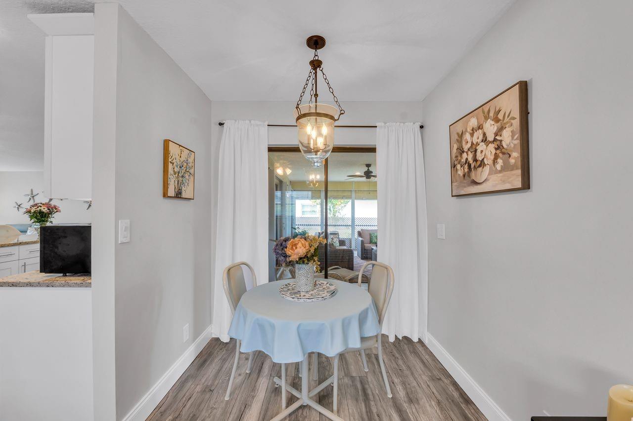 Tastefully updated 2Bed/2Bath Single Family home located on a quiet interior lot in the active, Pet Friendly 55+ community of Coco Wood Lakes. Versatile flex space currently used as a den and breakfast nook, along with a desirable split floor plan. Enjoy the large, private screened patio, ideal for relaxing or entertaining. The single-car garage features hurricane-rated door, updated electrical panel & W/D. 2009 roof (in great shape), 2019 A/C, and 2019 HWH. Full hurricane protection with impact windows and/or accordion shutters. Furniture is negotiable, making this home truly move-in ready. Low HOA of $198/month includes all amenities, cable, and high-speed fiber internet. Ideally located near EVERYTHING.Florida living at its bestconvenient, comfortable, and well-maintained.