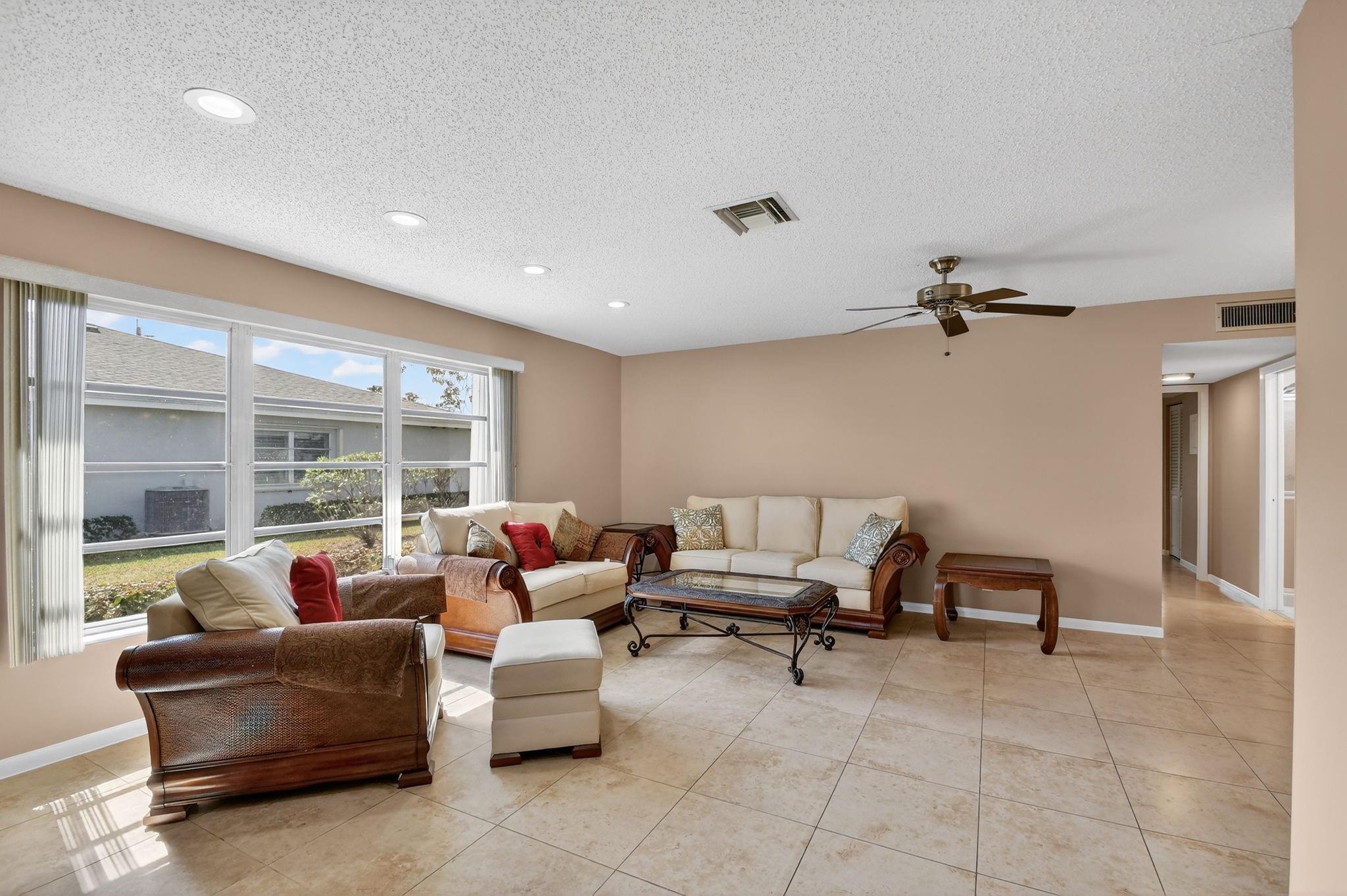 Welcome to High Point,2This two-bedroom, two-bath villa boasts neutral tiled floors that create a warm and inviting atmosphere. The open living room and dining room area are perfect for entertaining guests .The kitchen features wood cabinets and a stainless steel refrigerator. The bathrooms have been updated to offer modern conveniences, and the screened patio with accordion hurricane shutters is an ideal spot to relax and enjoy the Florida weather. Our residents enjoy access to a heated pool, a clubhouse for social gatherings, and a variety of sports facilities including pickleball, tennis, and a basketball court. Plus,our central location means you're only 4.5 miles away from the beach and downtown, making it easy to enjoy all that the area has to offer.Welcome to your new home!