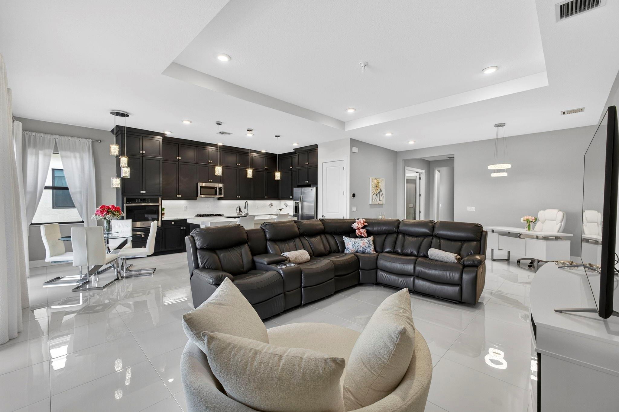 Welcome to a true example of luxury living in the highly sought-after 55+ community of Cresswind. This stunning 3-bedroom, 3-bath residence with an oversized den offers the perfect blend of modern comfort, style, & functionality. Perfectly positioned on a breathtaking lakefront lot, featuring a fenced-in yard, resort-style Saltwater pool, & an outdoor kitchenideal for both relaxing & entertaining. Showcasing premium upgrades throughout. Step inside to a spacious open-concept floor plan highlighted by high-end finishes, including designer flooring, custom lighting, upgraded cabinetry, & a gourmet chef's kitchen, boasting a natural gas range, top-of-the-line stainless steel appliances, & an oversized island with 3 inches Cambria countertops, perfect for gatherings and entertaining.