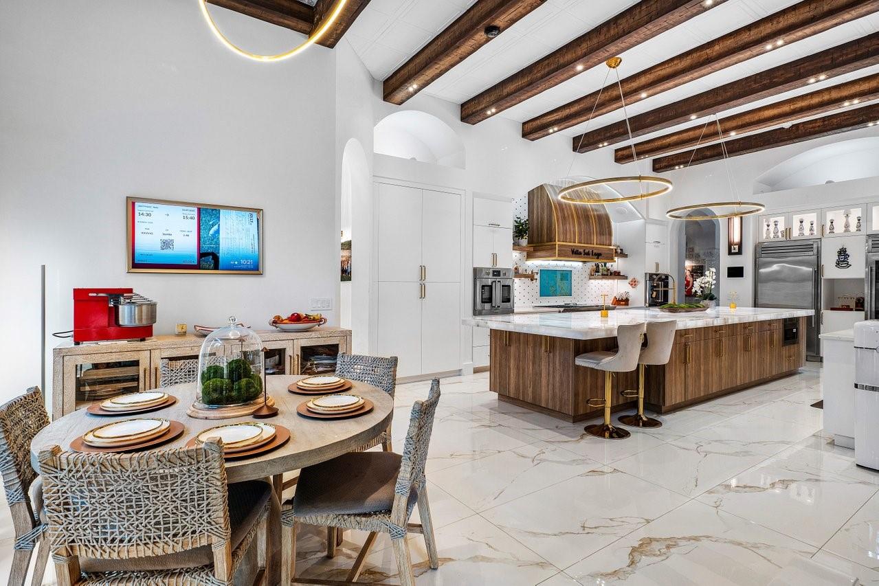 Supplements: The heart of the home is a newly reimagined chef's kitchen a true showpiece featuring dramatic waterfall-edge countertops, dual islands, custom wood cabinetry, and sleek brass hardware. A statement hood anchors the space, flanked by floating shelves, a built-in coffee bar, and top-tier appliances including double wall ovens, Sub-Zero refrigeration, and dual sinks. Designer pendant lighting, wood beam ceilings, and polished porcelain flooring complete the look making this space as functional as it is unforgettable.Step outside to your own private resort. The backyard is an entertainer's dream, complete with a saltwater pool, summer kitchen, covered loggia, and multiple lounge areas all overlooking tranquil lakefront scenery. Beyond the pool, the sprawling fenced yard includes a basketball court, playground, cold plunge, infrared sauna, beach area, and a private dock for the ultimate relaxation.Foxe Chase is a gated community known for estate-sized lots, mature tree-lined streets, and a peaceful, no cut-through setting all just minutes from downtown Delray Beach, top-rated schools, top-tier golf and fitness clubs, and the beach. With 24/7 security, a scenic community lake, and proximity to everything from Atlantic Avenue to Mizner Park, this is where luxury meets lifestyle.This is a rare opportunity to own a fully loaded lakefront compound in one of Delray's most coveted neighborhoods.