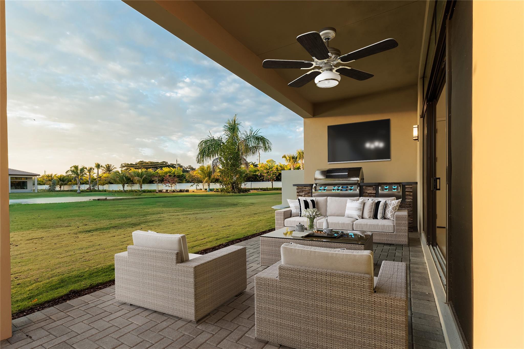 Supplements: Upgraded kitchen featuring 42'' frameless cabinetry, Level 2 quartz counters, stainless steel single-bowl sink, Moen fixtures, GE Profile appliances including 48'' refrigerator, gas cooktop, chimney hood, built-in wall ovens, microwave/oven combo, and double trash roll-out. Home offers impact windows, flat tile roof, full gutter system, extended garage, upgraded landscape package, brick-paver driveway and patio, and a fully sodded homesite with irrigation. Community amenities include clubhouse, pools, fitness, indoor/outdoor sports courts, playgrounds, and more.