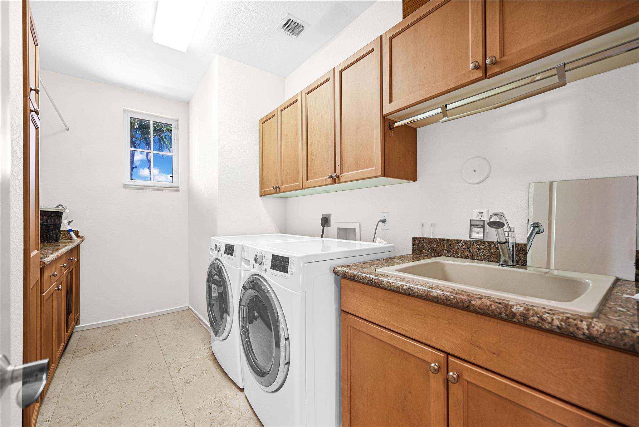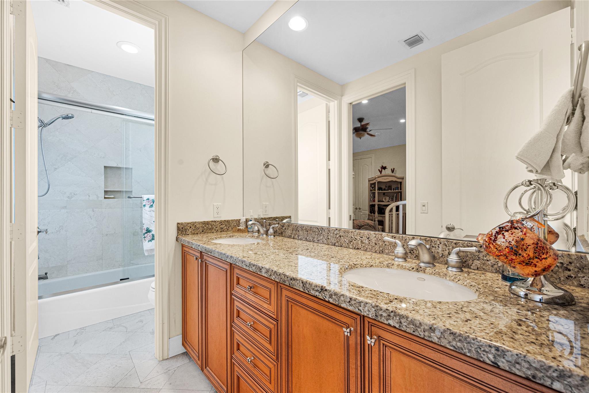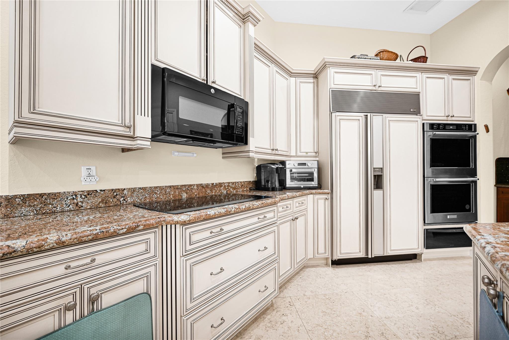 Supplements: It features granite countertops, two sinks, 2 dishwashers, brand-new ovens, timeless cream-toned raised-panel cabinetry, and custom storageblending beauty with everyday functionality.The family room boasts a custom built-in solid wood entertainment center, perfect for relaxed evenings, while a dedicated library/study with floor-to-ceiling shelving and a rare rolling ladder evokes the charm of an old-world reading room. Throughout the private living spaces, you'll find solid oak hardwood flooring in a natural satin stain.The primary suite includes a luxurious bath with stone tile flooring, dual vanities, a makeup station, a glass-enclosed shower, and a soaking tub. Adjacent is a custom walk-in closet with built-in cabinetry and shelving.Cool off outside in a private backyard oasis with a recently redone heated pool and waterfall spa, set in a warm-toned brick paver deck. Surrounded by swaying coconut palms and tropical fruit trees, including a Hass avocado tree and banana plants, this lush, fully fenced yard is serene and functional. After a swim, rinse off in the cheerful poolside cabana bathroom with mosaic tile and a walk-in shower.From its 21st-century construction to its flawless upkeep, this exceptional home blends elegance and practicality in one of Boca Raton's most sought-after neighborhoodsjust minutes from houses of worship, top schools, the beach, Town Center Mall, and Mizner Park.