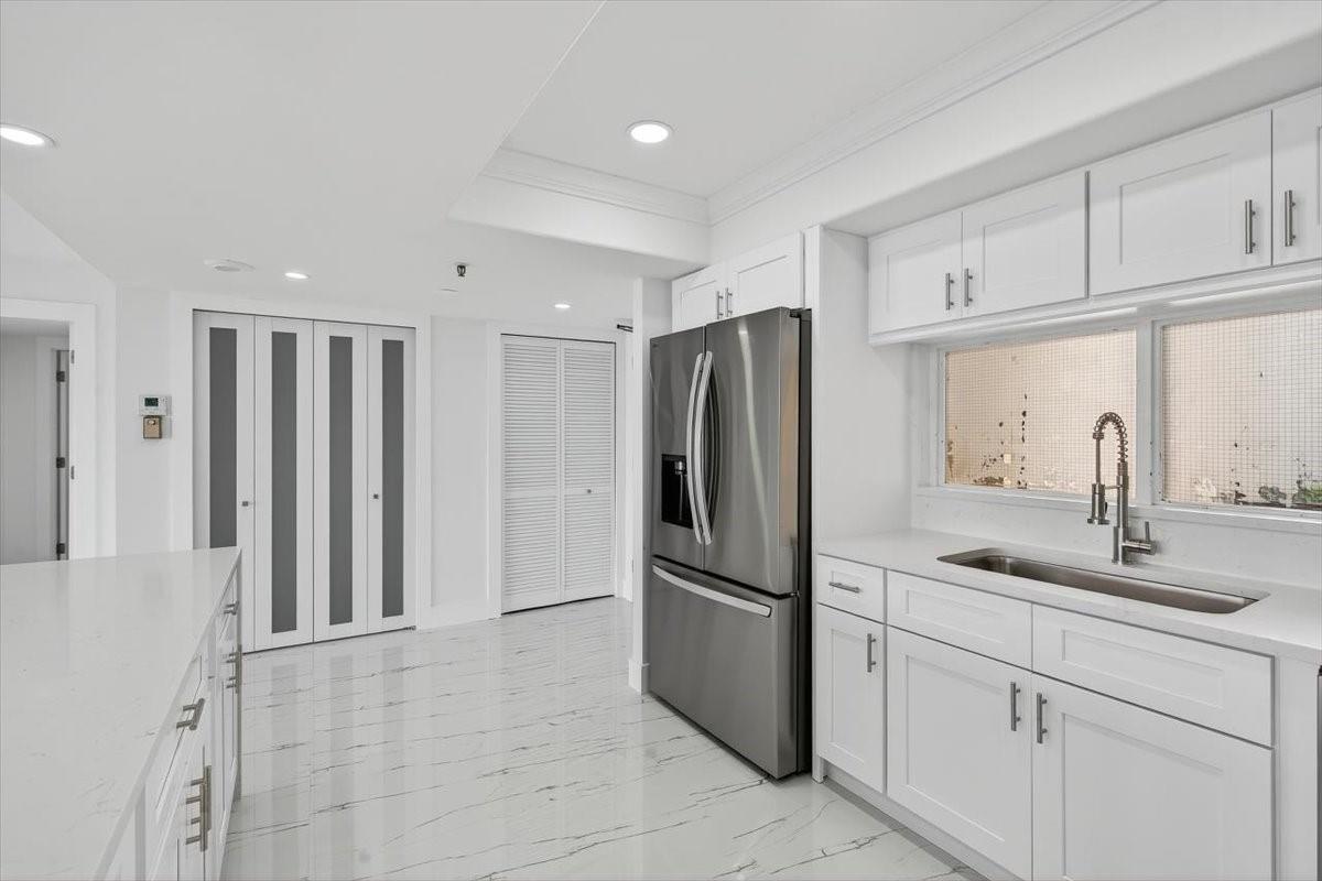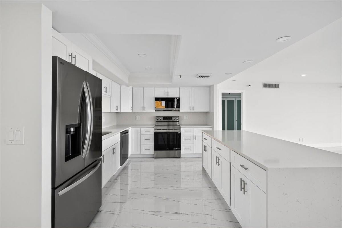 Experience modern living in this stunning 2-bedroom, 2-bath condo perched on the 9th floor with breathtaking east-facing lake views. Located in the heart of West Palm Beach, Florida, this fully renovated residence combines comfort, style, and convenience.Step inside to find an open-concept layout with elegant finishes throughout. The sleek kitchen features updated cabinets, quartz countertops, and stainless steel appliances. Impact windows and doors provide peace of mind and fill the unit with natural light, creating a bright and airy atmosphere.Enjoy your morning coffee on the private balcony overlooking the serene lake. The primary suite offers a spacious retreat with plenty of room for relaxation or entertaining.