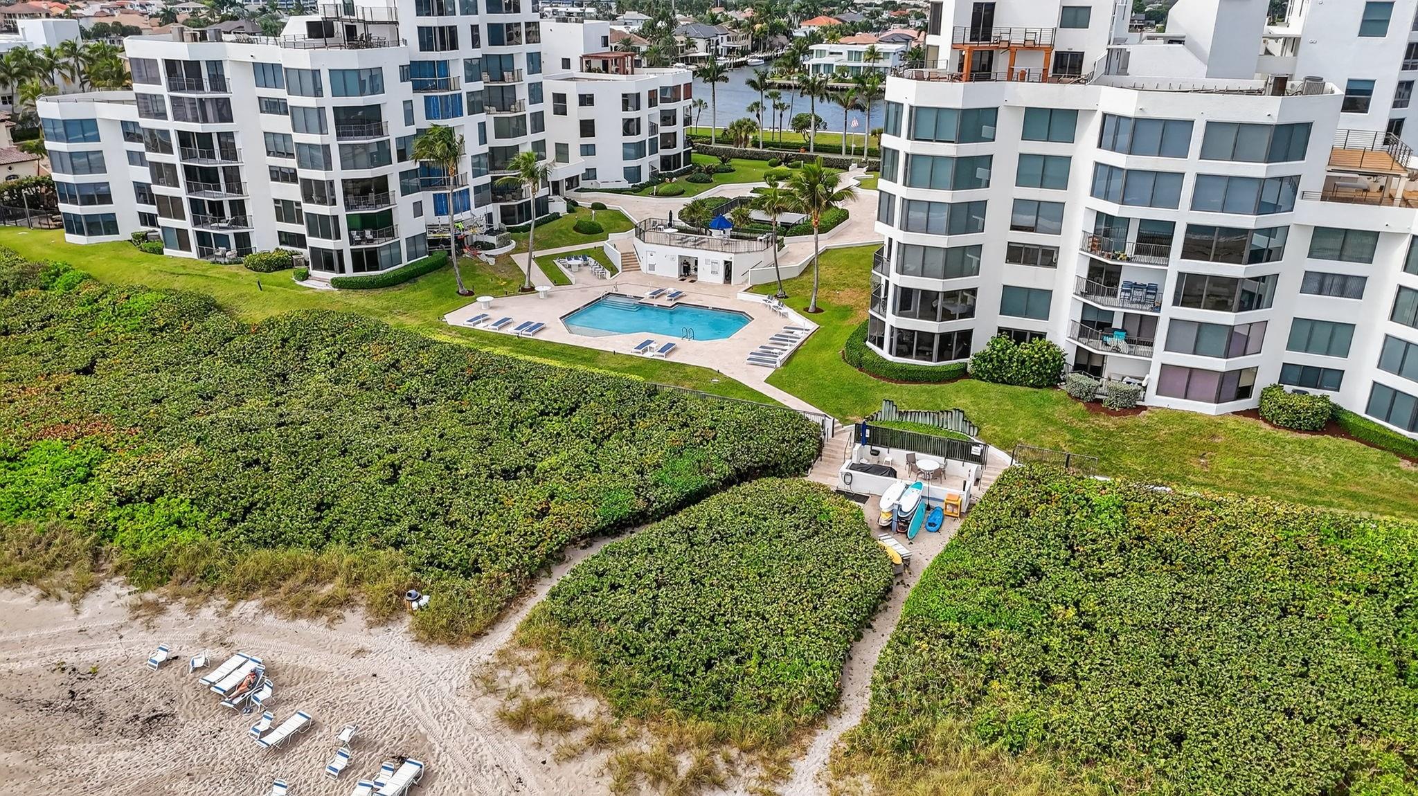 Feel like you're on vacation every day in this rare oceanfront 3-bedroom, 3-bath townhouse with stunning, uninterrupted Intracoastal views. This recently renovated unit features impact windows, new appliances, and a new AC. All critical building repairs and updates have been completed in this financially sound community. Enjoy true coastal living with private beach access and a private pool. The structurally sound building is well maintained with reserves in place, while on-site management and maintenance ensure the property is impeccably cared for. Enjoy all that Highland Beach has to offer with quick access to both Boca Raton and Delray Beach.
