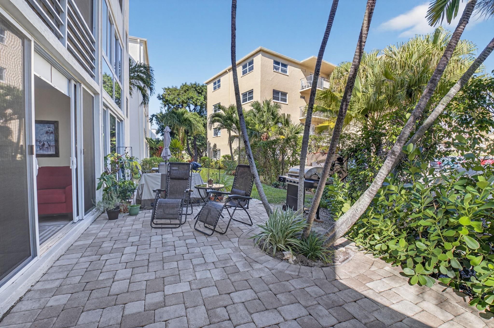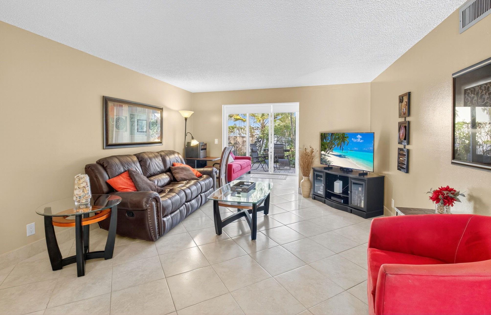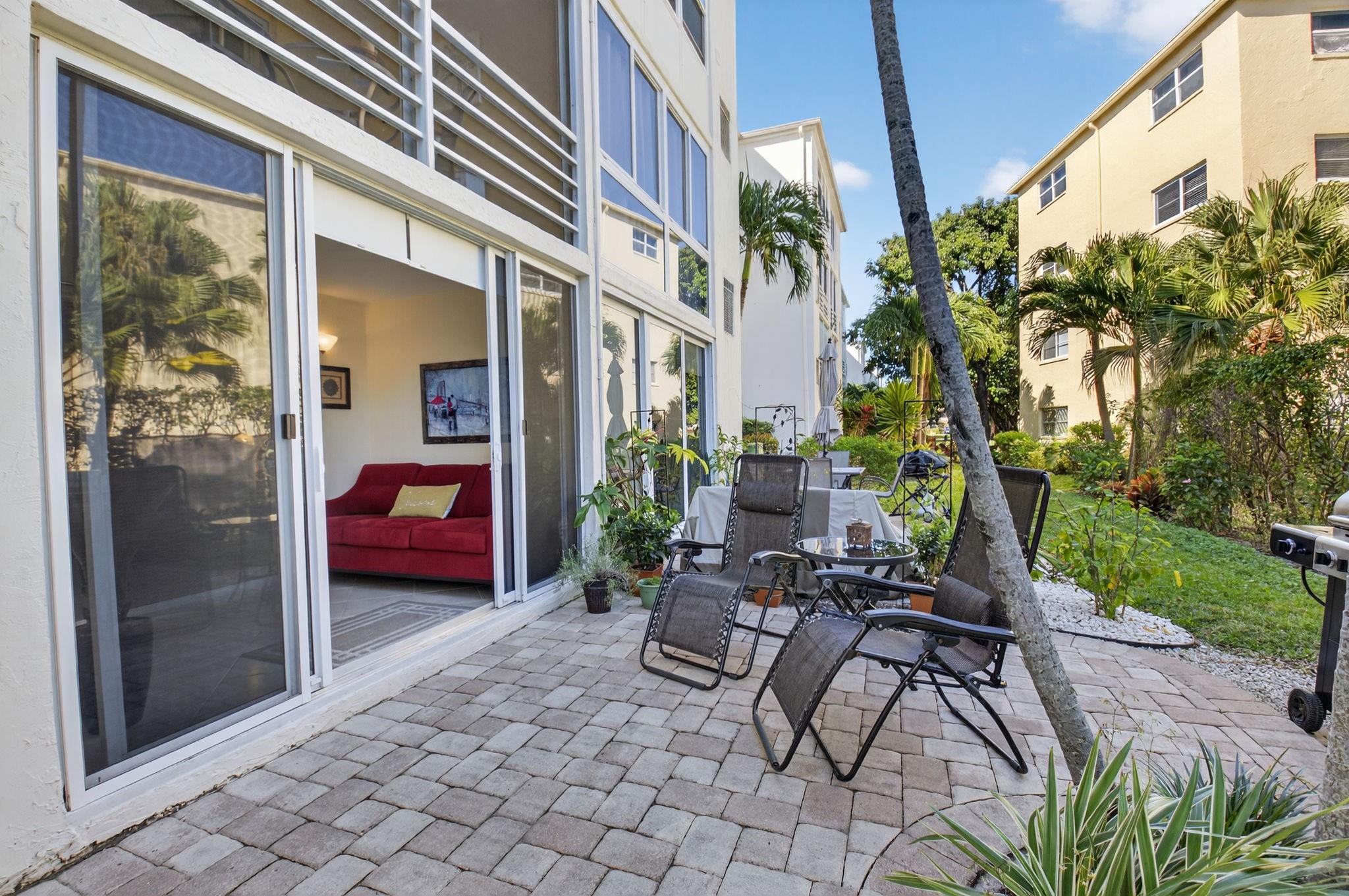 **RARELY AVAILABLE 2/2 CORNER 1st floor w/ HUGE private TERRACE & your own BBQ!* NEW IMPACT HURRICANE WINDOWS & PATIO DOOR* Parking space at your front door* RENOVATED Kitchen & Bathrooms in IMMACULATE condition* Neutral TILE throughout* FULLY nicely FURNISHED-TURNKEY & Queen Sofa-bed on patio for even more visitors* 2 walk-in closets + Storage* A/C 2021, NEW Electric panel, WH 2019* NEW inside doors & front glass door* NO special assessment, HOA: $660/month include Water, Cable, INTERNET, Building Insurance & Maintenance, Pest control & access to all amenities* FANTASTIC 55+ community w/ 2 Clubhouses, Theater, 2 Pools/spas, Fitness center, Pickleball/Tennis/Bocce courts, Computer/Cards rooms, lots of Activities/Special events* CONVENIENTLY located just EAST of I-95, 2 miles from the BEACH