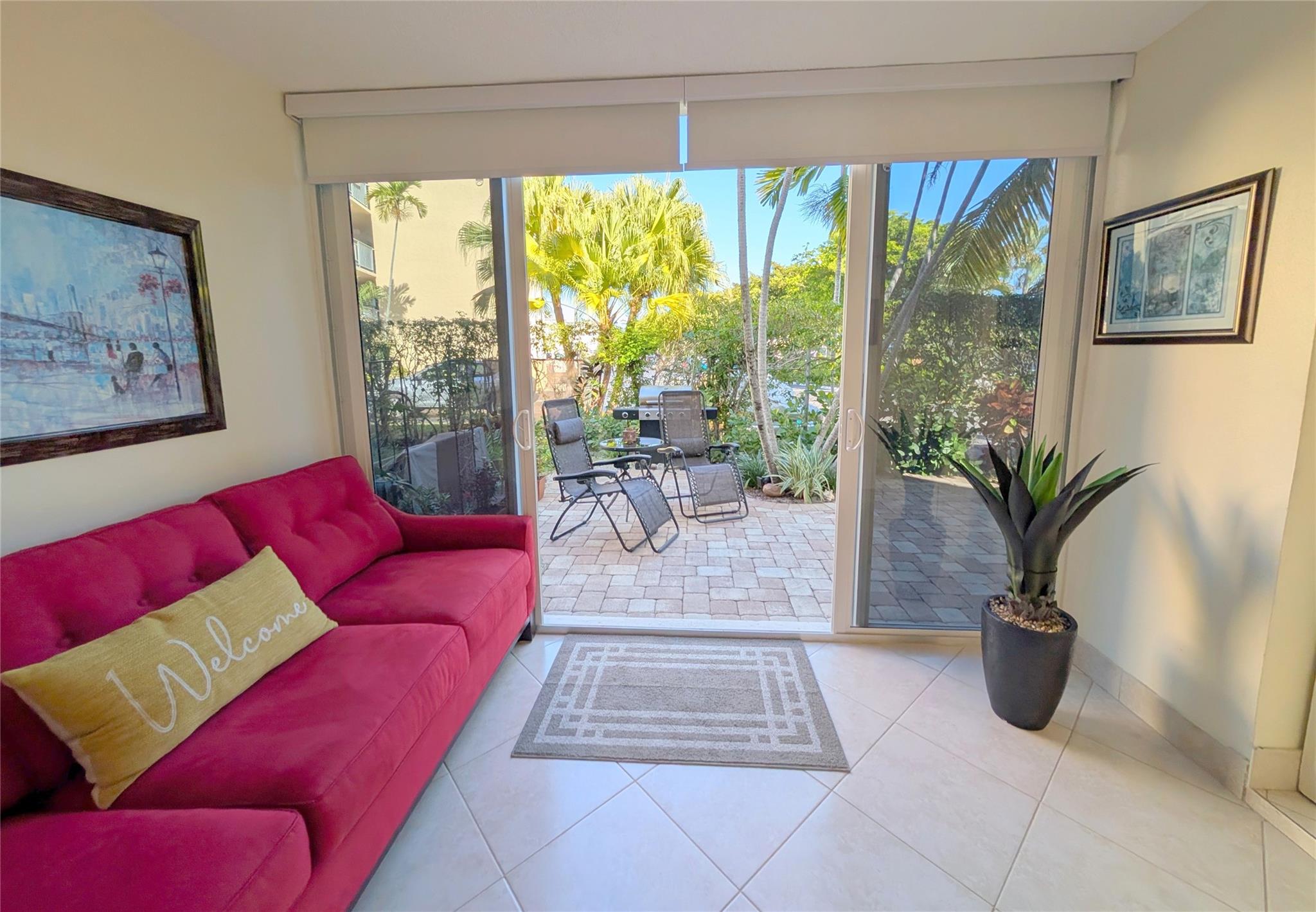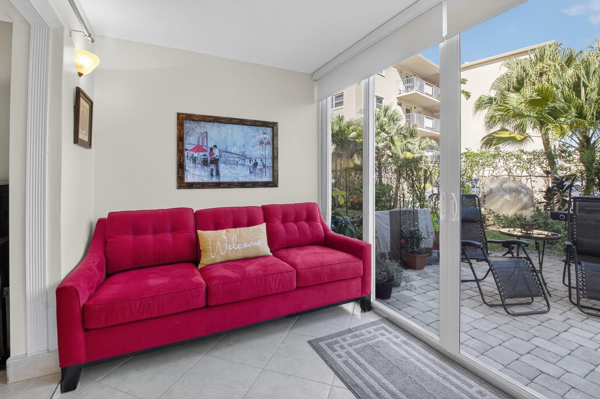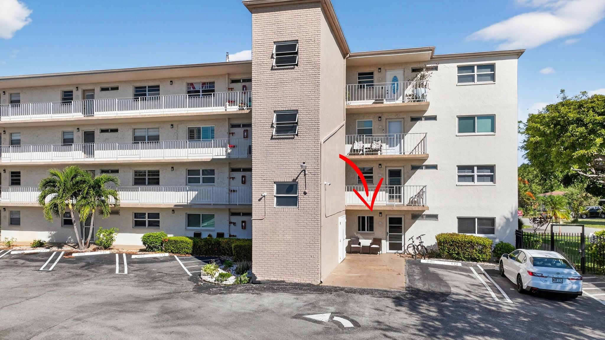 **RARELY AVAILABLE 2/2 CORNER 1st floor w/ HUGE private TERRACE & your own BBQ!* NEW IMPACT HURRICANE WINDOWS & PATIO DOOR* Parking space at your front door* RENOVATED Kitchen & Bathrooms in IMMACULATE condition* Neutral TILE throughout* FULLY nicely FURNISHED-TURNKEY & Queen Sofa-bed on patio for even more visitors* 2 walk-in closets + Storage* A/C 2021, NEW Electric panel, WH 2019* NEW inside doors & front glass door* NO special assessment, HOA: $660/month include Water, Cable, INTERNET, Building Insurance & Maintenance, Pest control & access to all amenities* FANTASTIC 55+ community w/ 2 Clubhouses, Theater, 2 Pools/spas, Fitness center, Pickleball/Tennis/Bocce courts, Computer/Cards rooms, lots of Activities/Special events* CONVENIENTLY located just EAST of I-95, 2 miles from the BEACH