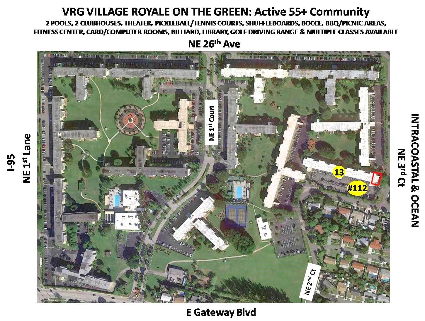 Directions: From I-95: Exit Gateway Blvd EAST. VILLAGE ROYALE ON THE GREEN (VRG) is on your LEFT. To BUILDING 13 (VR GREENDALE) on NE 3rd Ct. Plenty of guests parking