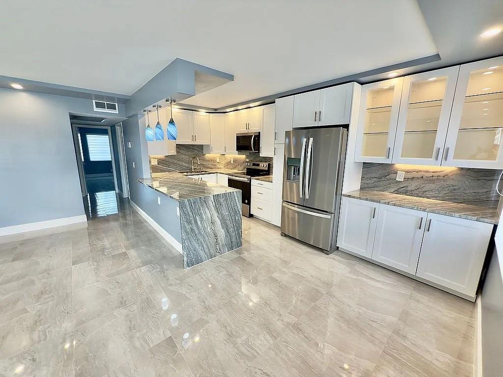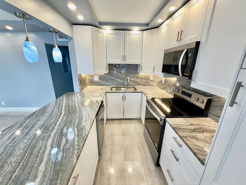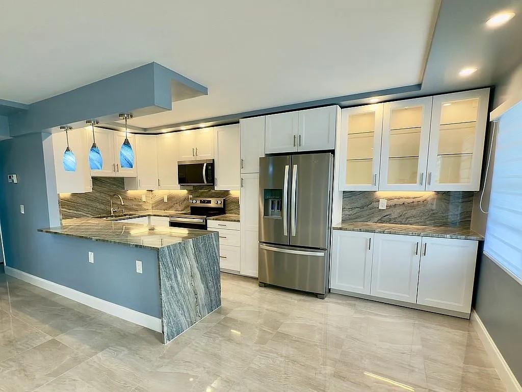 Fully renovated unit in the heart of Boca Raton, located in the desirable Guildford section of Century Village ready for immediate move-in! This beautifully updated home features a brand-new kitchen, modern bathrooms with walk-in showers, elegant new countertops, an open-concept layout, all-new stainless-steel appliances, new tile flooring throughout, and custom window treatments. Enjoy stunning lake views from your private screened patio, perfect for relaxing mornings or peaceful sunsets. Century Village is a 55+ active lifestyle community offering exceptional amenities: indoor and outdoor pools, tennis courts, a state of the art clubhouse, library, theater, fitness center, and free shuttle service to local shopping. Water, basic cable, and internet are included the HOA fees.