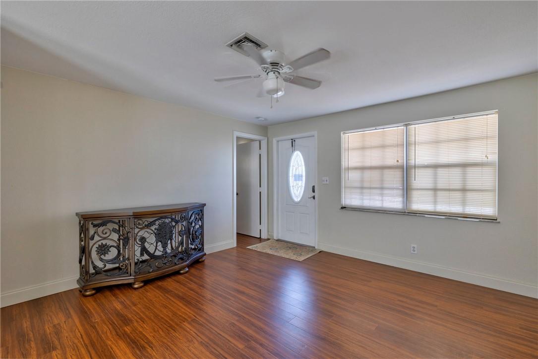 This is a beautifully updated 3 bedroom, 2 bathroom home with huge privately fenced backyard with lots of fruit trees. perfect for entertaining friends and family. Kitchen recently upgraded with new cabinets and countertops and stainless steel appliances and bathrooms recently updated. New wood flooring thru-out. Across the street from Boynton Beach recreational center with pools and lots of activities for kids. This is a perfect starter home for a single person or young family. Close to highways, shopping and schools. No monthly association fees. FHA and VA financing acceptable.