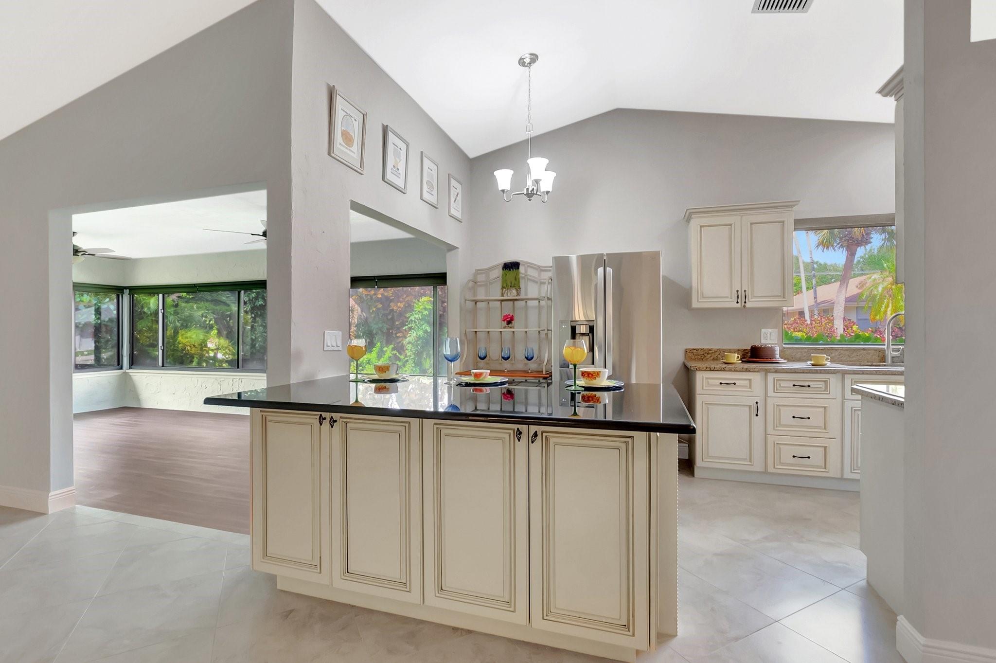 SENSATIONAL, UPDATED home features 2 BR/2Baths w/ oversized enclosed sunroom, ALL IMPACT WINDOWS & DOORS + 2 car Garage! 55+ living perfected. Screened entry porch opens to foyer welcoming you to WIDE OPEN FLOORPLAN! HUGE LR w/ soaring ceiling adorned w/ smooth finish. Neutral CONSISTENT, tile flooring in LA. Entertaining is a breeze in your BIG chef's kitchen boasting SAMUNG S/S appliances, tons of cabinets &/picture window. Savor your morning coffee at your kitchen island. Fall in love in the HUGE primary SUITE w/ BIG walk in closet-perfect for any fashion fan! Updated bath w/ granite counter & undermount sink. Walk in shower w/ rain glass doors. Guests will love the corner BR & updated bath w/shower. HUGE sunroom adds tons of living space! Low HOA for the AMENITIES GALORE!!! Gated