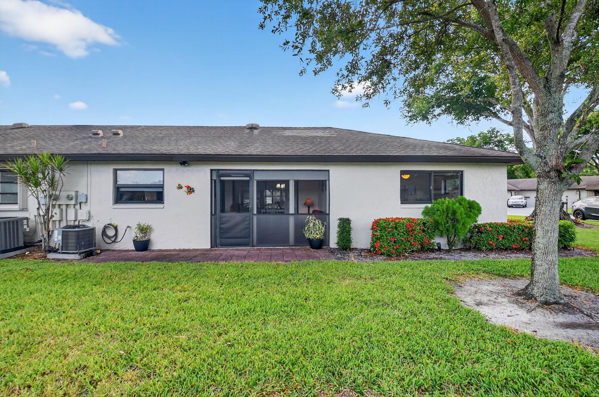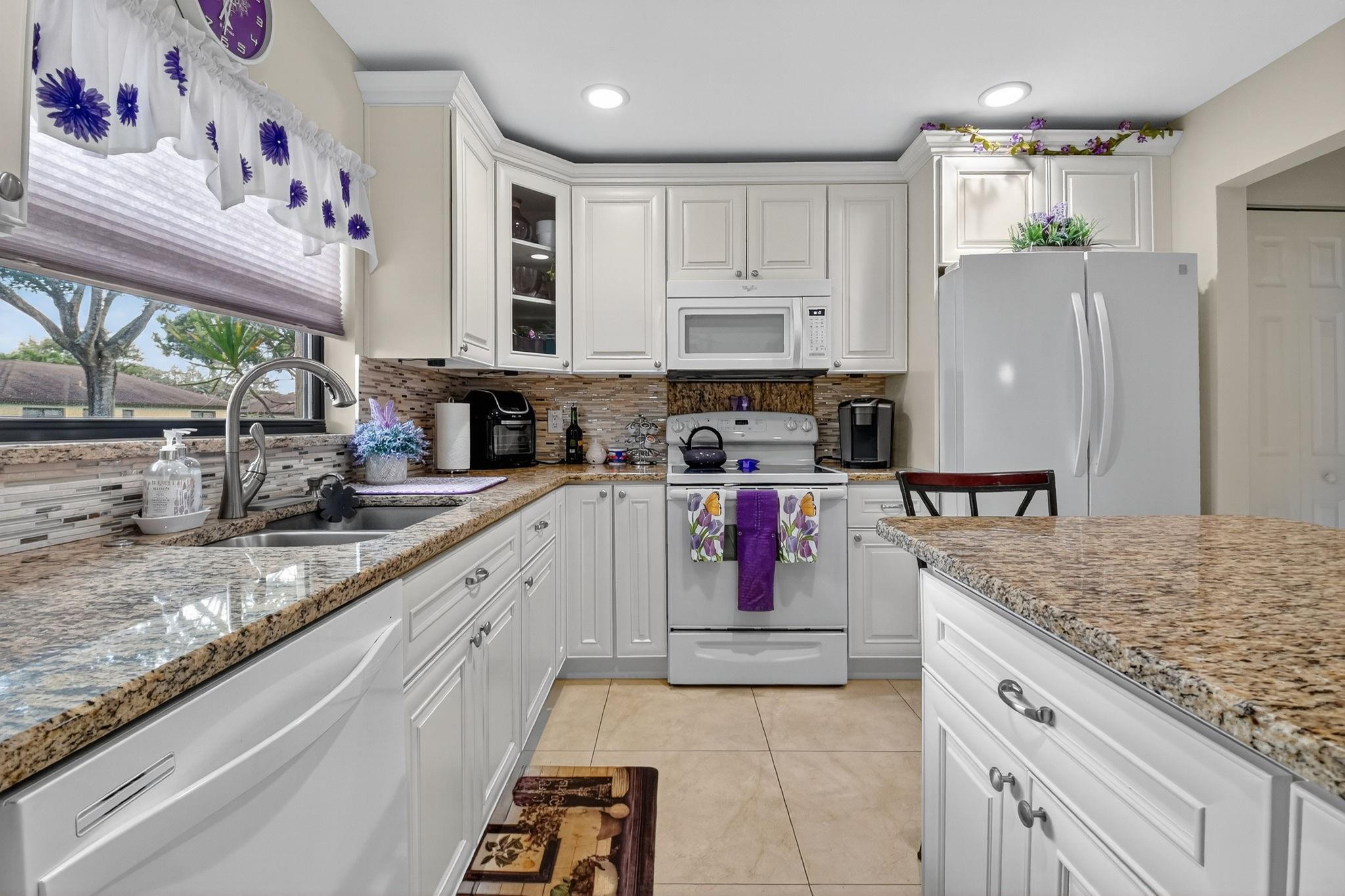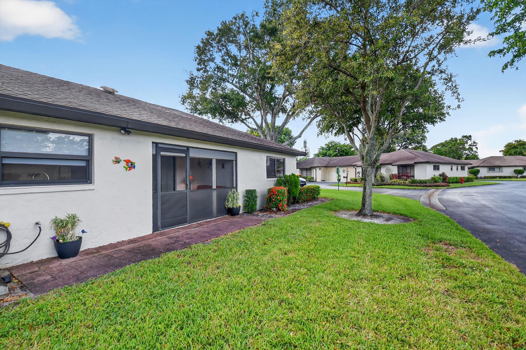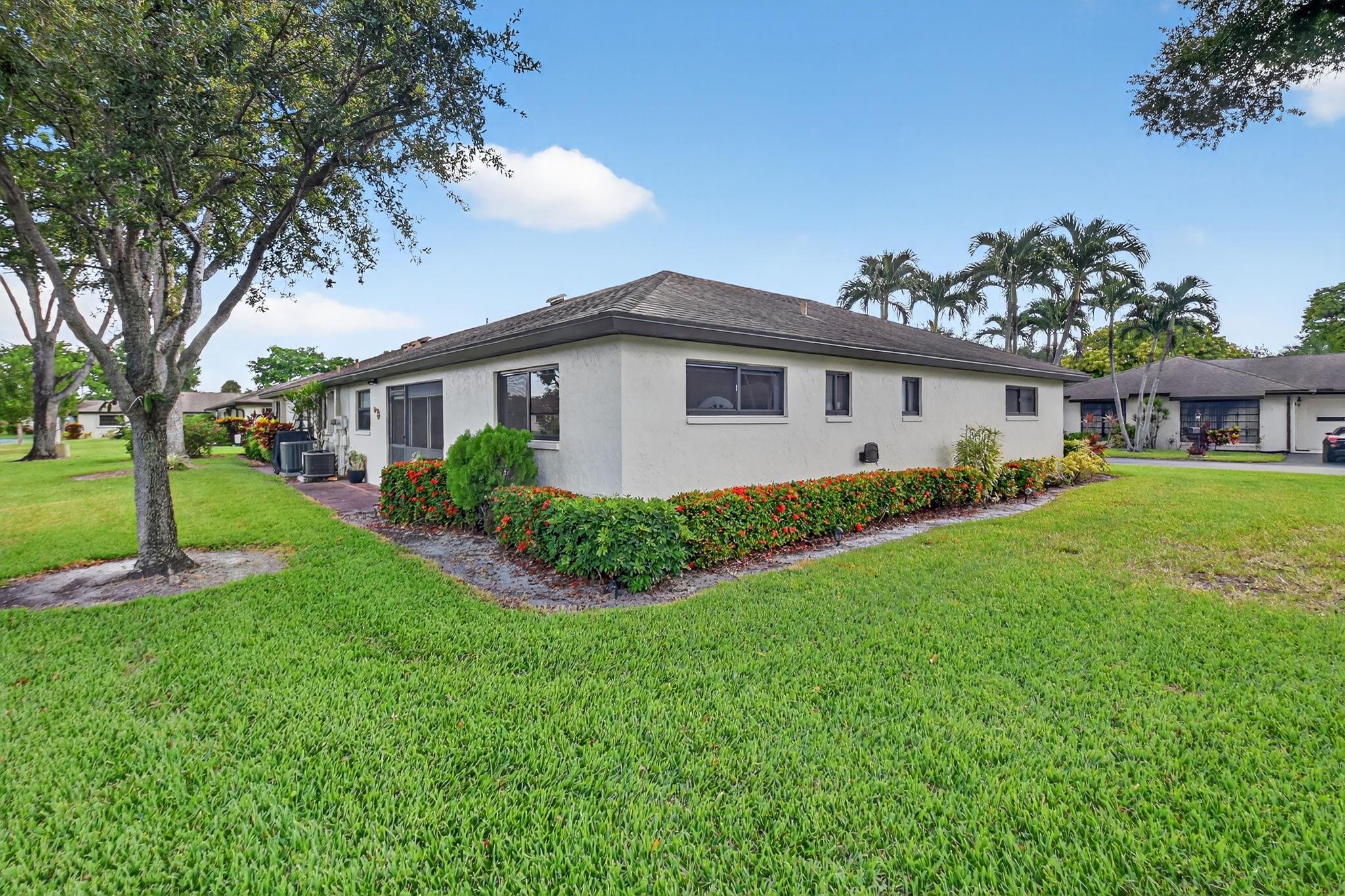 Beautiful move-in ready villa featuring wood-look tile throughout main living areas. The updated kitchen boastsgranite counters, a large island, and two spacious pantries. Renovated bathrooms, plantation shutters, hurricaneimpact windows, and a newer AC (2022) offer comfort and style. Stacked washer/dryer in the garage with atticinsulation and a new pull-down ladder. Enjoy the screened lanai with Italian tile leading to your outside patio. Thecommunity features 6 pools, 6 clubhouses, and the HOA includes exterior maintenance, roof care, buildinginsurance, lawn care, water, basic cable, and internet. Located less than 15 minutes from the beach, shopping,dining, and vibrant Atlantic Avenue. South Florida living at its best, don't miss this one!