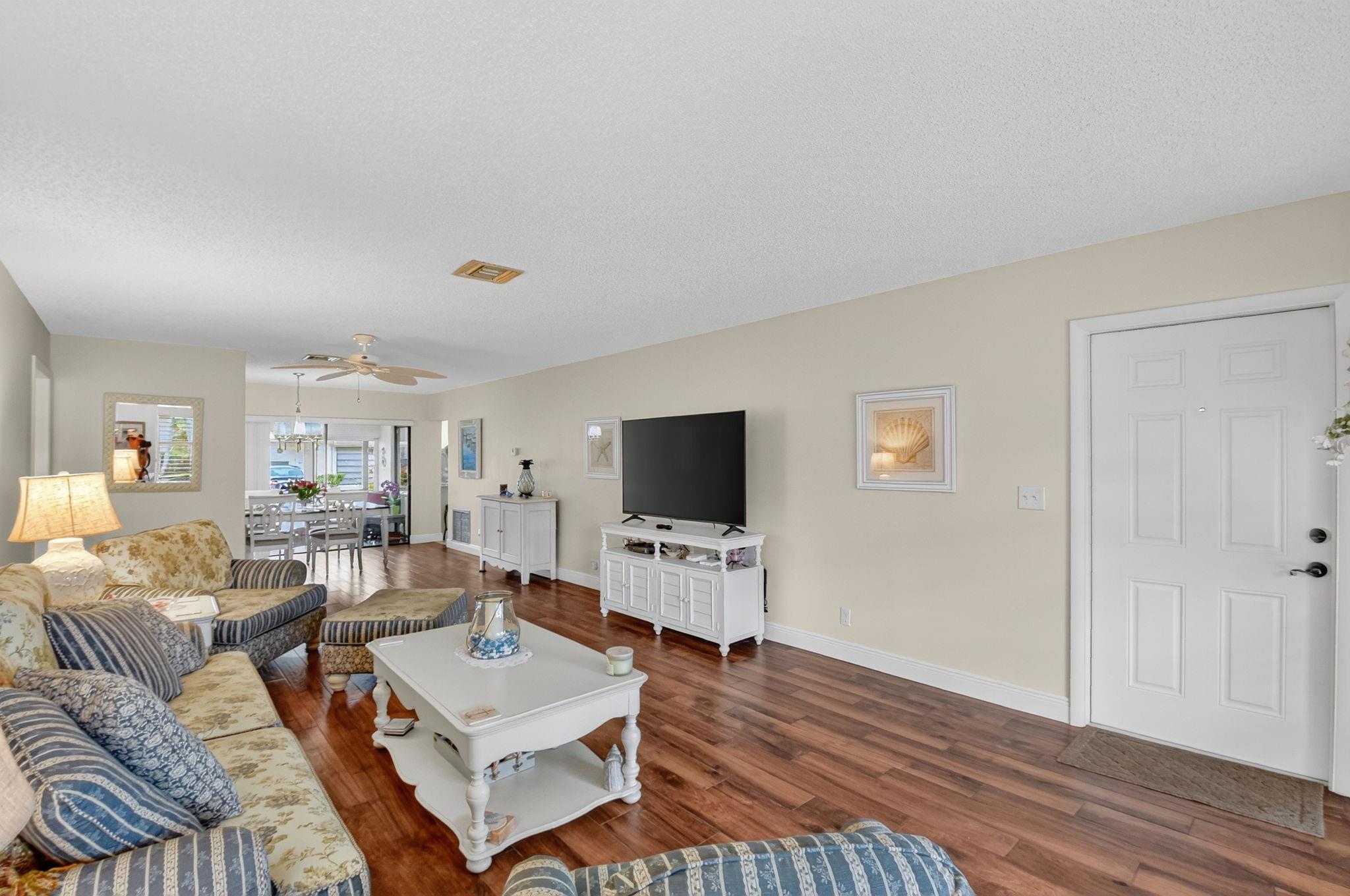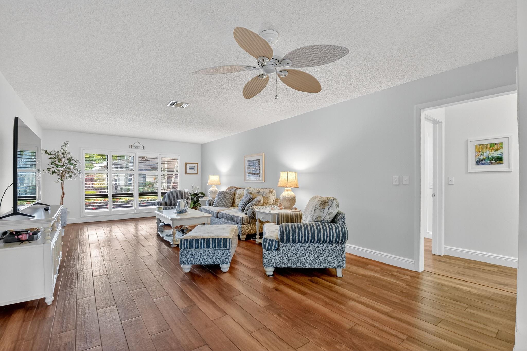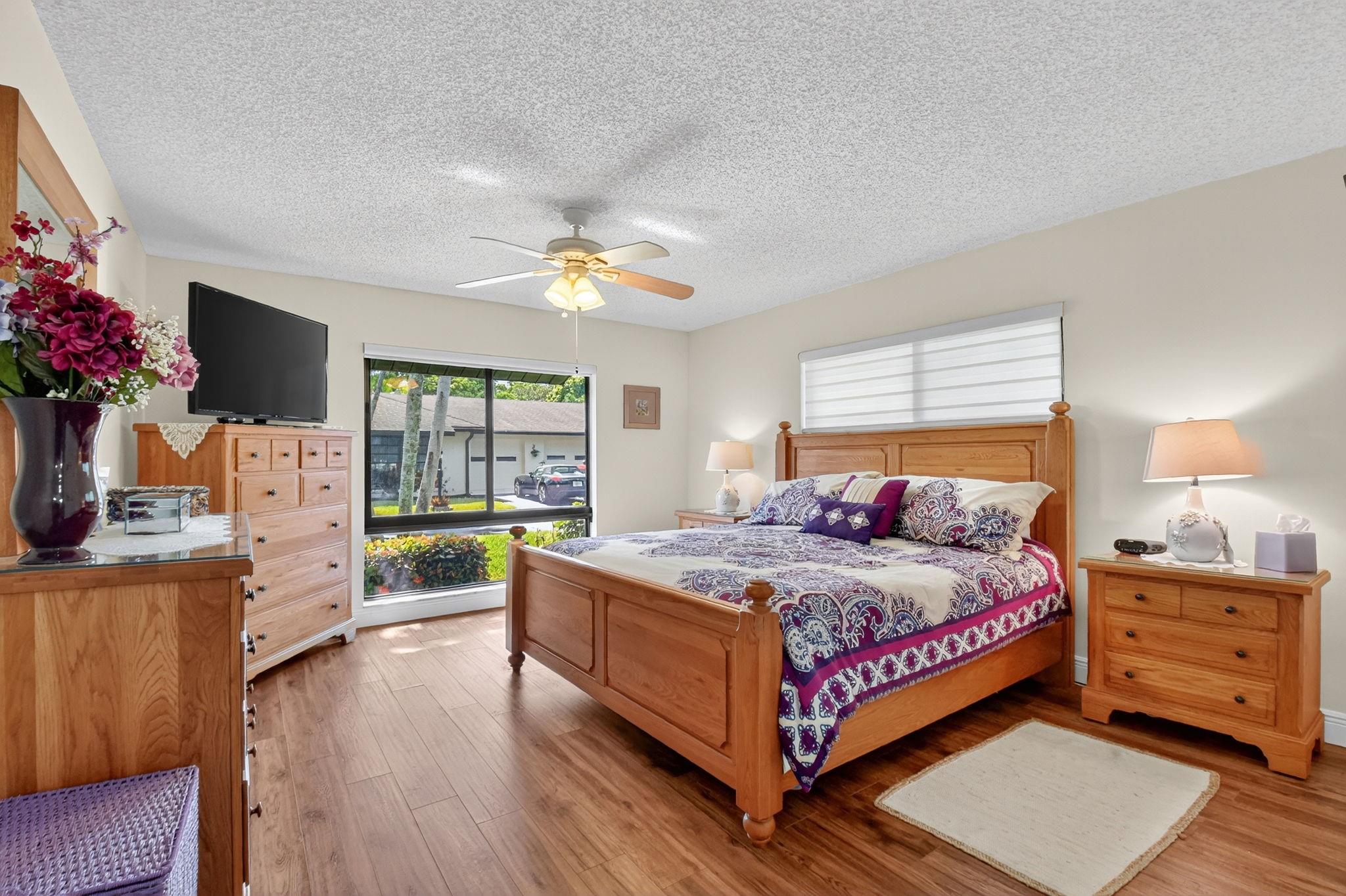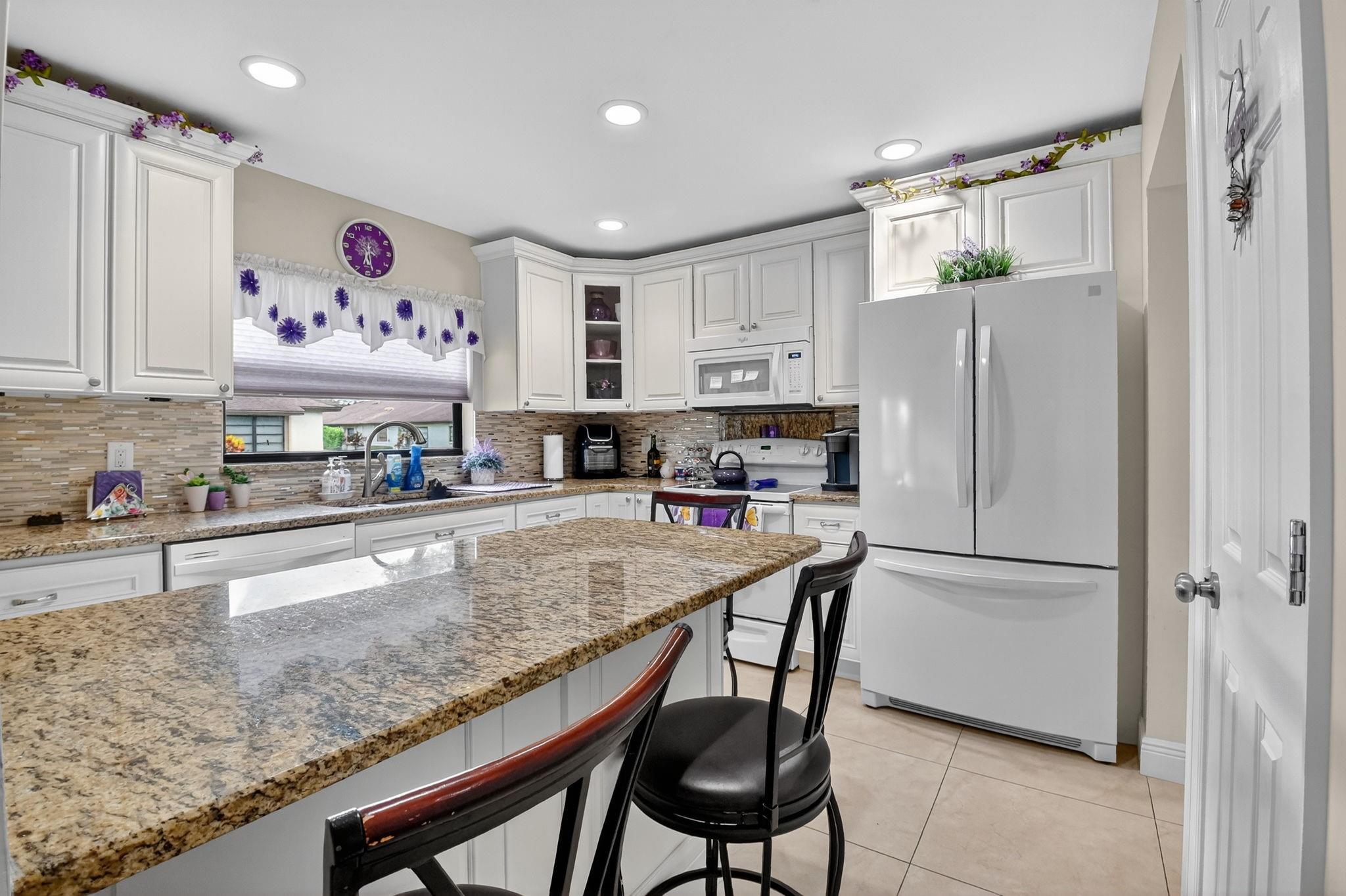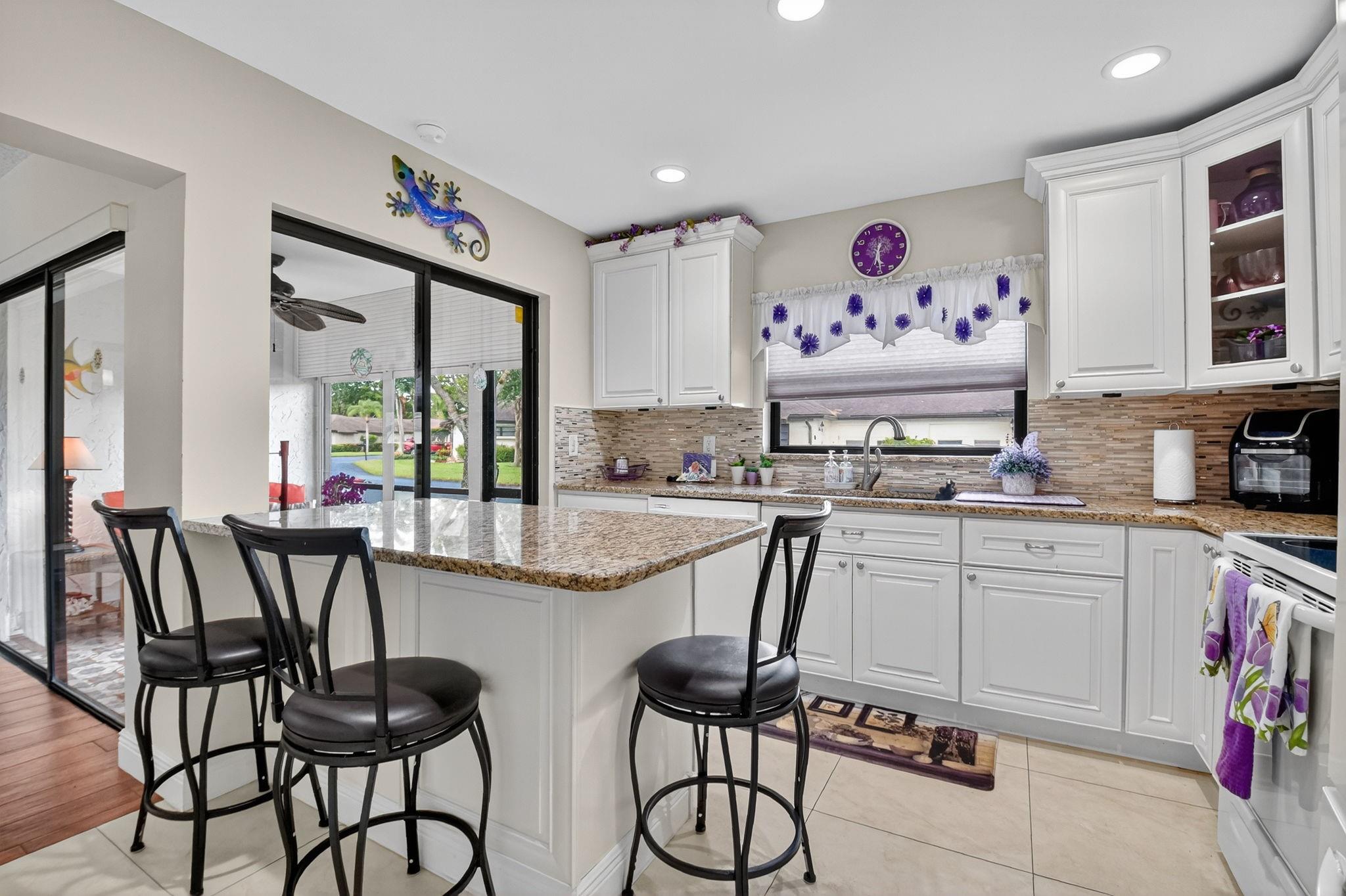Beautiful move-in ready villa featuring wood-look tile throughout main living areas. The updated kitchen boastsgranite counters, a large island, and two spacious pantries. Renovated bathrooms, plantation shutters, hurricaneimpact windows, and a newer AC (2022) offer comfort and style. Stacked washer/dryer in the garage with atticinsulation and a new pull-down ladder. Enjoy the screened lanai with Italian tile leading to your outside patio. Thecommunity features 6 pools, 6 clubhouses, and the HOA includes exterior maintenance, roof care, buildinginsurance, lawn care, water, basic cable, and internet. Located less than 15 minutes from the beach, shopping,dining, and vibrant Atlantic Avenue. South Florida living at its best, don't miss this one!