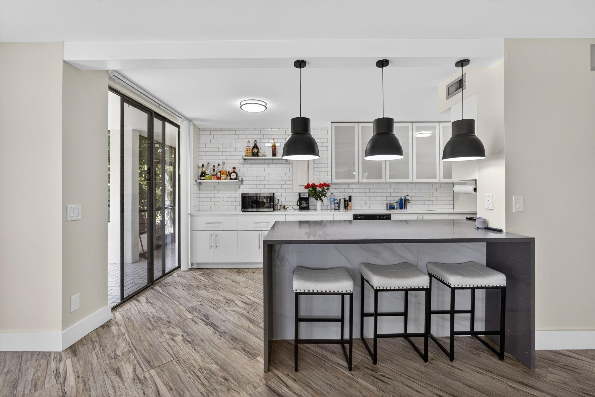 Welcome to this clean, updated, open space condo. Partially furnished. Located on the first floor with patio access. Steps away from the pool. This space is so relaxing you will never want to leave. This 2 bedroom condo is open space concept and each bedroom is on opposite sides giving each a lot of privacy. The master has a walk-in AND a regular closet plus an on-suite double sink bathroom. The kitchen is long / wide and has a big island concept end. In addition you have a wrap around balcony!! Plenty of storage spaces as well. A full laundry room. What else do you need for your stay-cation?! All utilities are included in HOA mo. fee except FPL.