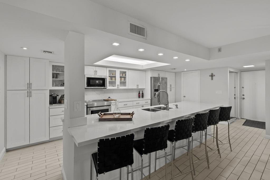 Experience elevated living in this beautifully updated 3-bedroom, 3-bath penthouse condo, ideally located just minutes from Downtown Delray, major highways, and the beach. Recently remodeled, the residence features a sleek new kitchen and modernized bathrooms. Impact-rated windows and doors provide both safety and energy efficiency throughout the home. A spacious, screened-in balcony extends from the living area and primary bedroom, offering a seamless blend of indoor comfort and outdoor relaxation.