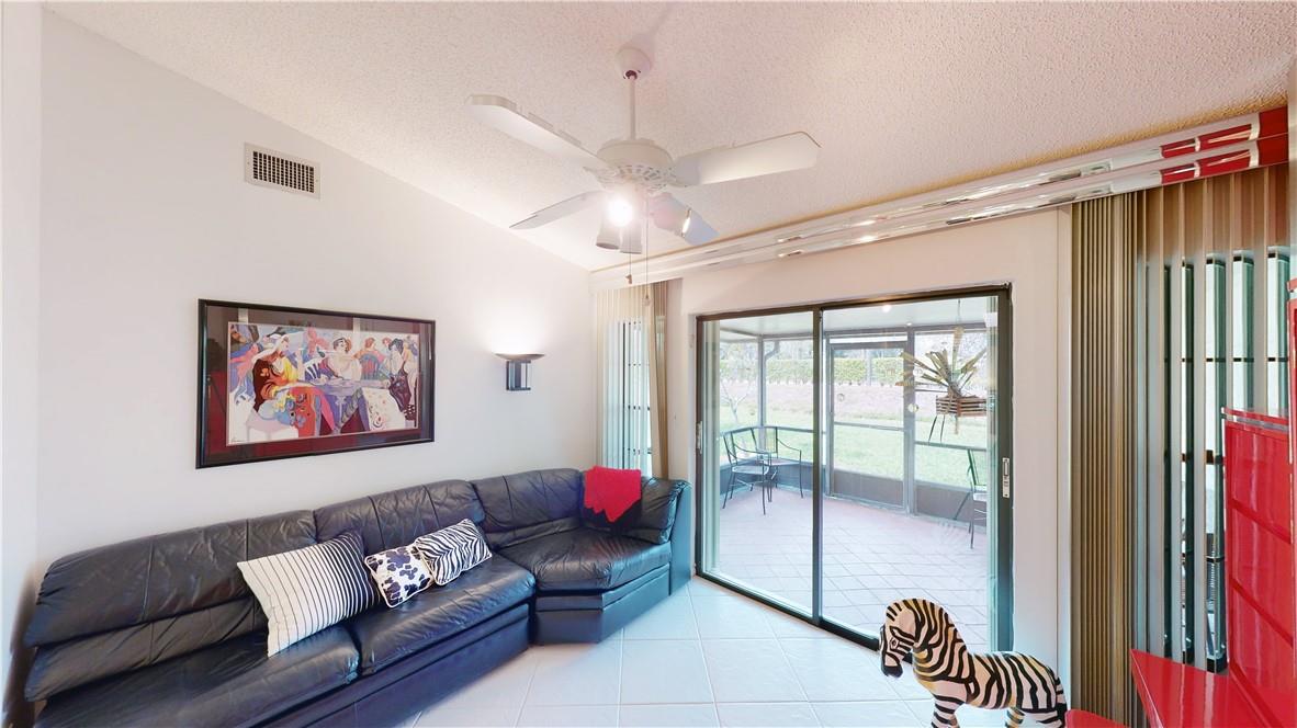 Beautiful, Bright 2-Bedroom, 2-Bath Villa with Vaulted Ceilings, Private Screened Patio and 1-Car Garage with Additional Den/Office or Guest Quarters (Open 3rd Bedroom). Family Room Attached to Formal Living and Dining Room. Lots of Space and Storage in this Clean and Contemporary-Styled Unit. Tiled Throughout. Updated Stainless Steel Appliances in the Kitchen. Accordion Shutters on all Windows. Inside Full-Sized Laundry. Located in Palm Chase which is a Gated, Active 55+ (Housing for Older Persons) Community Nestled 1/4 Mile from Military Trail Behind the Seminary and Church. Clubhouse Features Tennis, Pickleball, Bocce and Shuffleboard along with a Temperature Controlled Pool and Hot Tub. Inside Offers Many Activities, Functions and Fitness Rooms, Sauna, Steam and More!