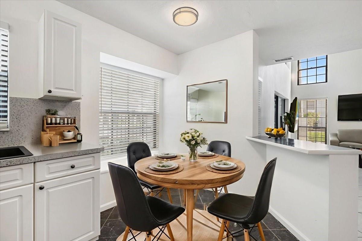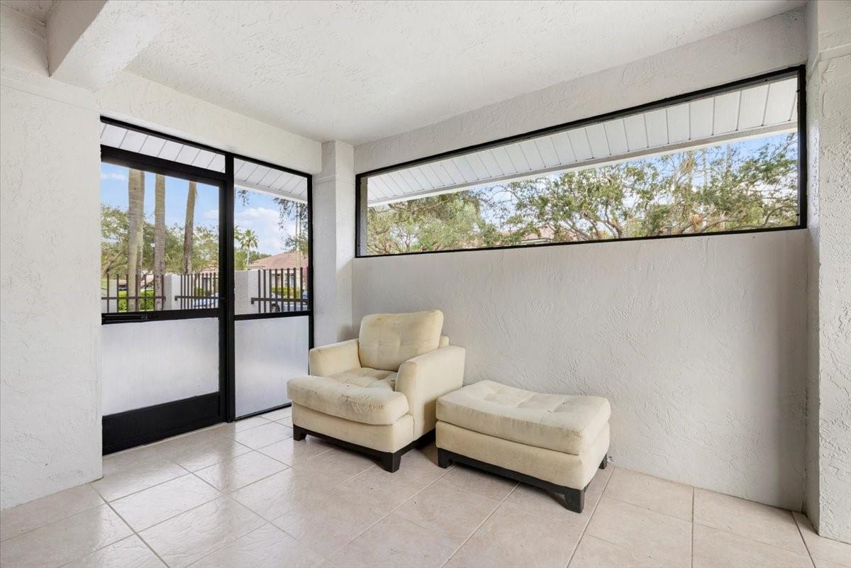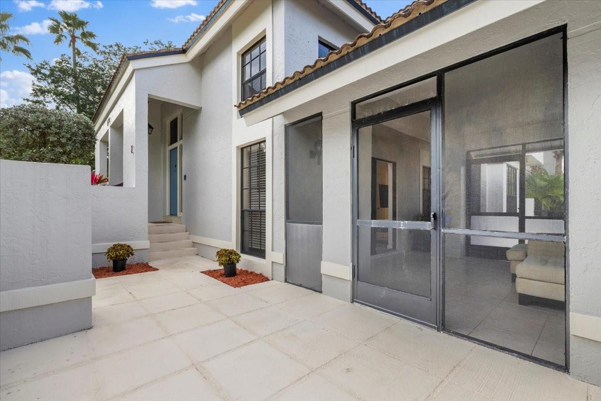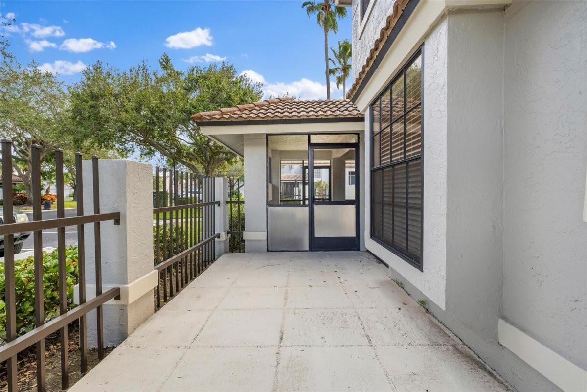 Located in the gated, resort-style PGA National community, this clean and well-maintained 2-bedroom, 2-bath corner-unit townhouse offers a desirable two-story layout. The first floor features a guest bedroom and full bath, while the upstairs sizable primary suite includes vaulted ceilings, a walk-in closet, and its own living area. High ceilings on the main level create a bright, open feel, enhanced by abundant natural light throughout the home. The kitchen offers dual ceramic sinks and an eat-in breakfast nook. Tile flooring runs throughout both levels. Enjoy Florida living with a screened-in lanai and additional porch space. New roof and newer water heater. PGA National amenities include a clubhouse, multiple pools, tennis, pickleball, and championship golf. Membership not required.