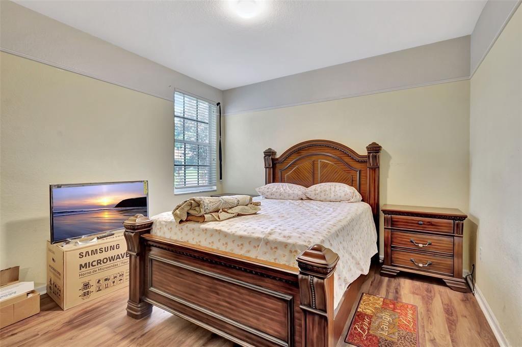 Nestled in a family-friendly, gated community, this stunning 5-bedroom, 3-bathroom home epitomizes luxurious living. The grand living room, with its vaulted ceilings and elegant plantation window treatments, creates a sophisticated atmosphere. The modern kitchen, updated with state-of-the-art appliances in 2024, is perfect for culinary creations. The thoughtful layout includes a first-floor bedroom and full bathroom, ideal for guests, an office, or multi-generational living. The spacious master suite features a luxurious bathroom, offering a private sanctuary. Outside, the expansive yard with a sparkling pool provides a serene retreat, blending comfort, style, and convenience. Perfect for hosting gatherings or enjoying peaceful moments.