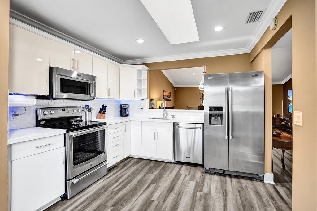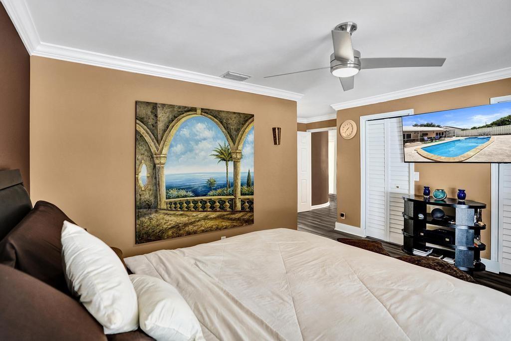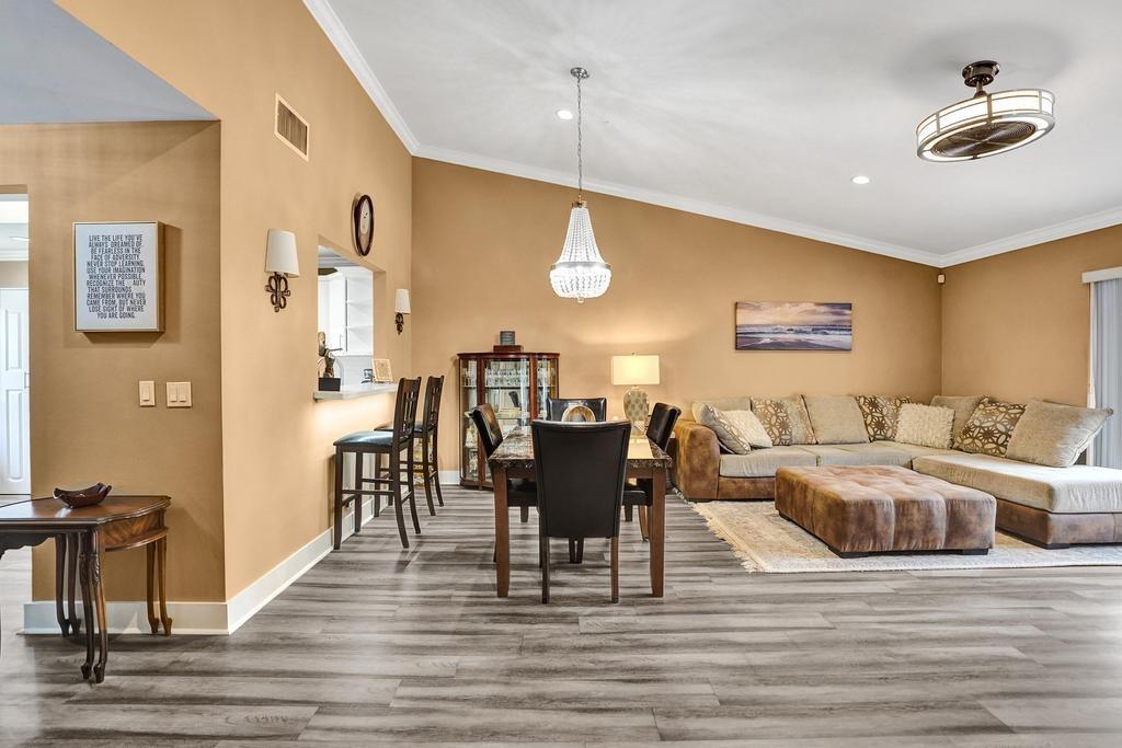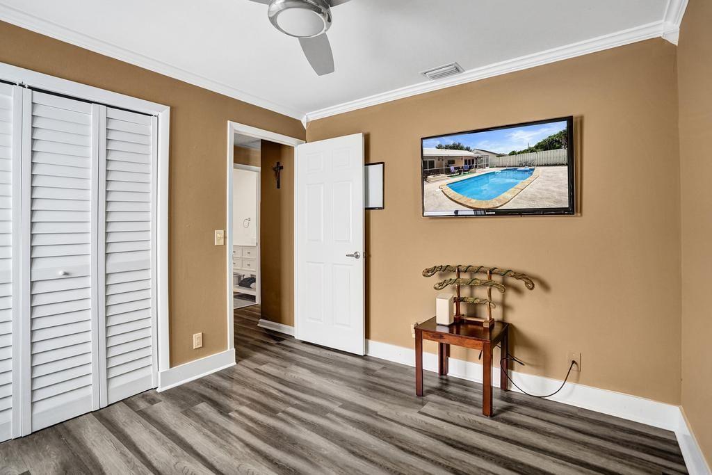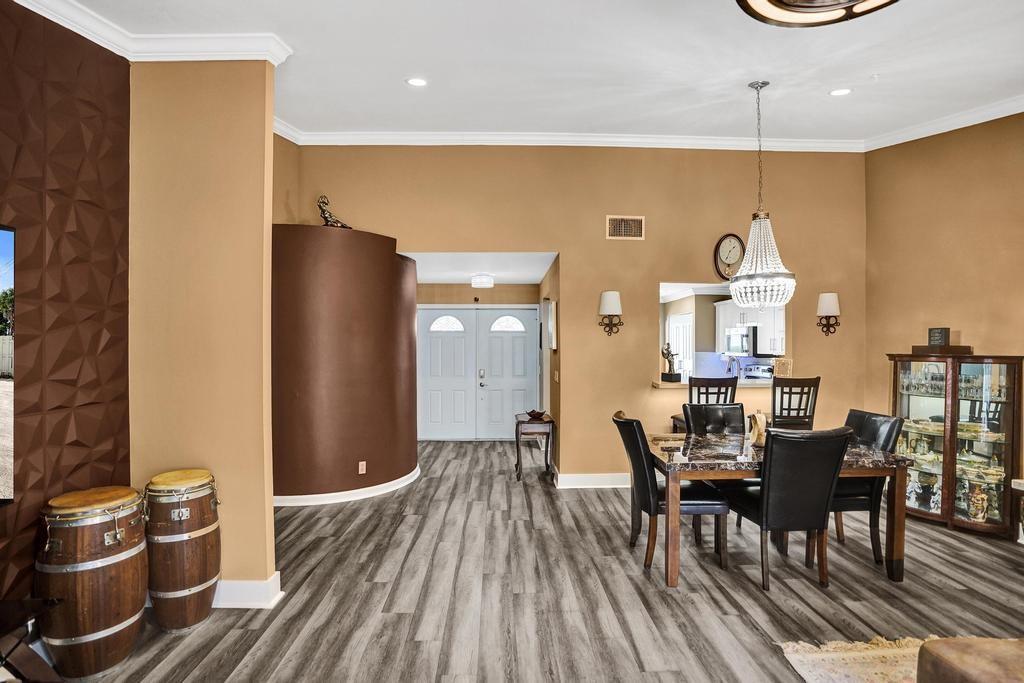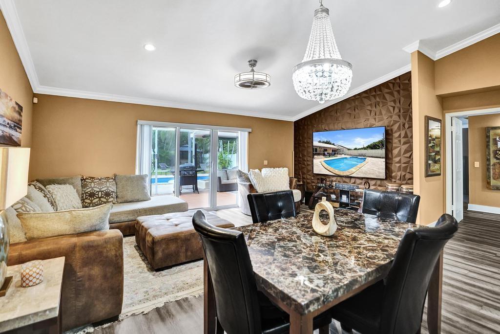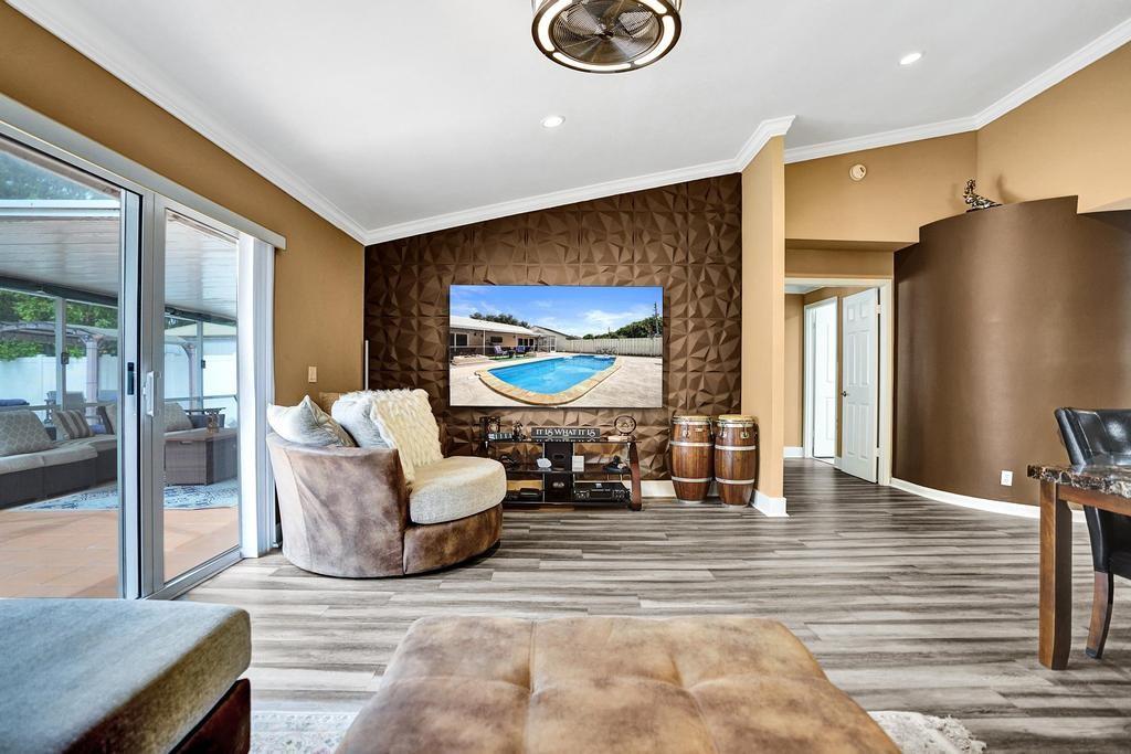 Your private entertainment paradise in Strawberry Lakes! This 3-bed, 2-bath, 2 car garage pool home. The backyard is the star, 1 of only 7 in the community with a sparkling pool, tiki hut, & plenty of space to host unforgettable gatherings. Enjoy a covered, screened patio, lush landscaping, & one of the largest lots in the neighborhood. Inside, you'll find vaulted ceilings with crown molding, recessed lighting, luxury vinyl plank flooring, a modern kitchen & white granite counters, a skylight, & stainless appliances. All windows, doors & sliders are hurricane impact. The primary suite features a double door entrance, an upgraded bathroom with white and blue subway tile, a rain shower, & dual vanities. This home is move-in-ready, ready to host your first party!