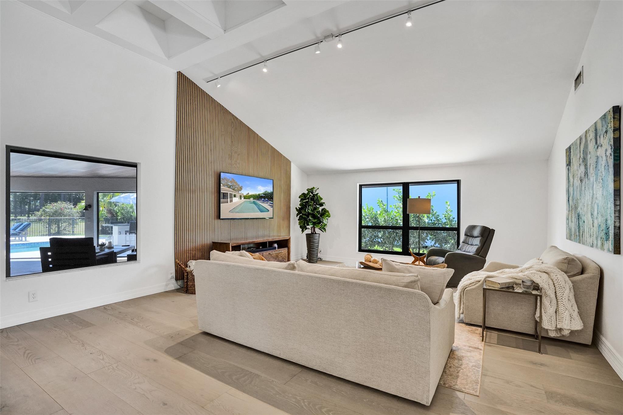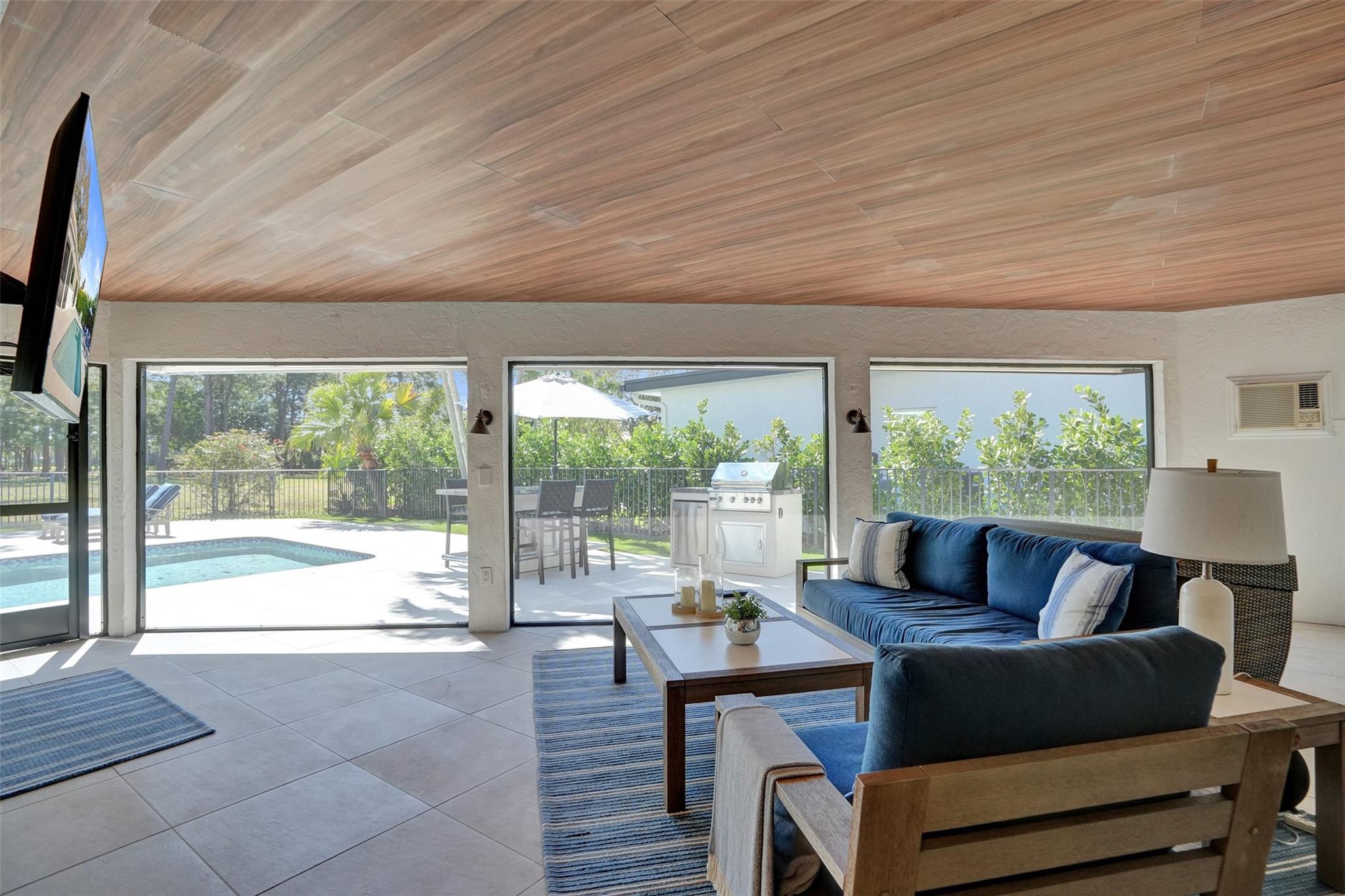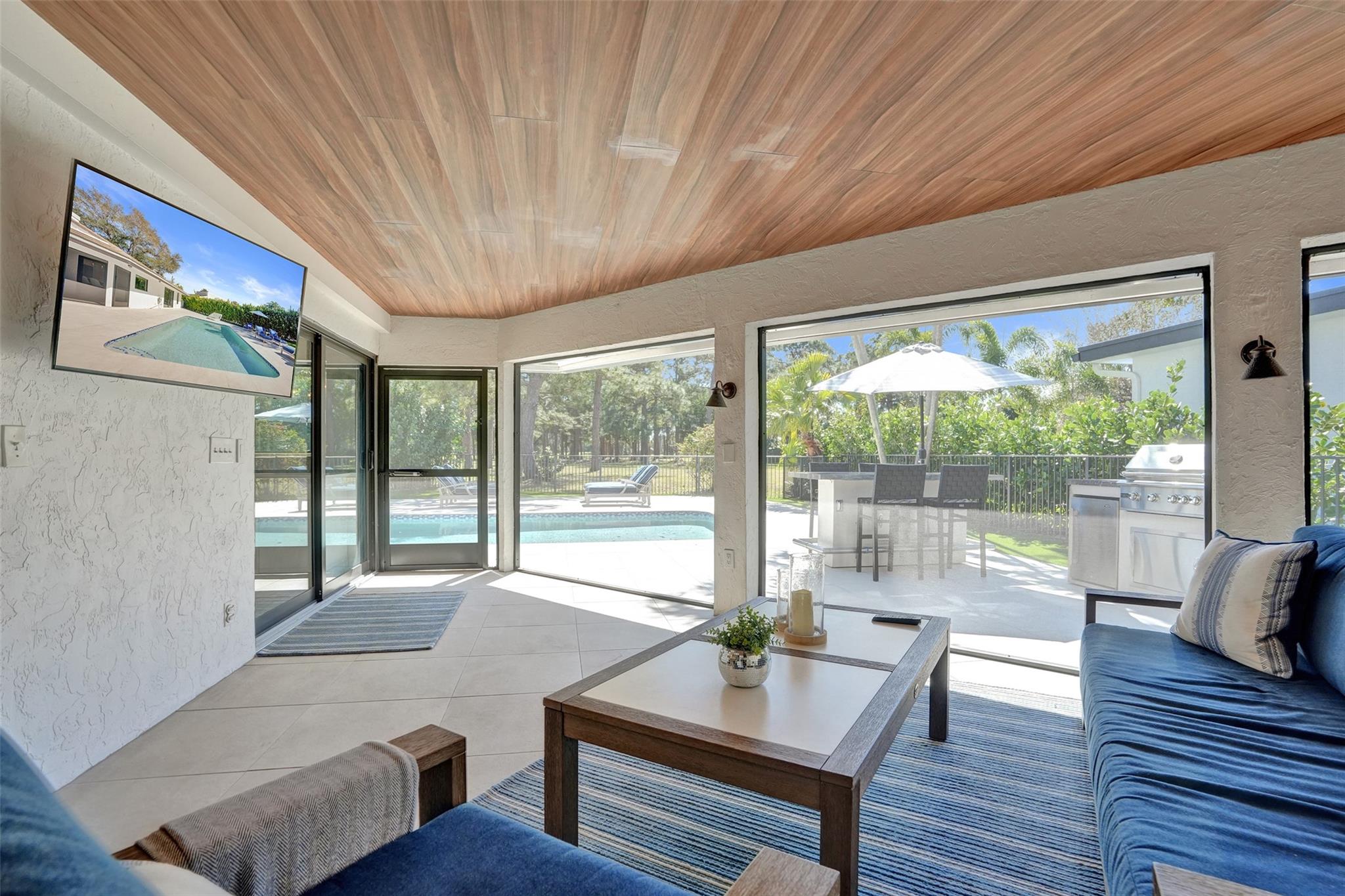 Fully renovated and move in ready this 3-bedroom 3-bath residence is located in Seagate Golf Club. Featuring a sought-after triple-split floor plan, the home offers both privacy and flexibility. Interior highlights include coffered ceilings, hardwood flooring and refined architectural details throughout. The chef's kitchen features a large center island, quartz countertops, custom cabinetry and abundant storage, opening seamlessly to the main living spaces. All three bathrooms have been updated with custom tilework, including a spacious primary suite with separate tub and shower. The private backyard completes the home with a large pool, covered porch and multiple areas to relax outdoors. Opportunities like this are limited with this level of renovation. Golf Membership optional.