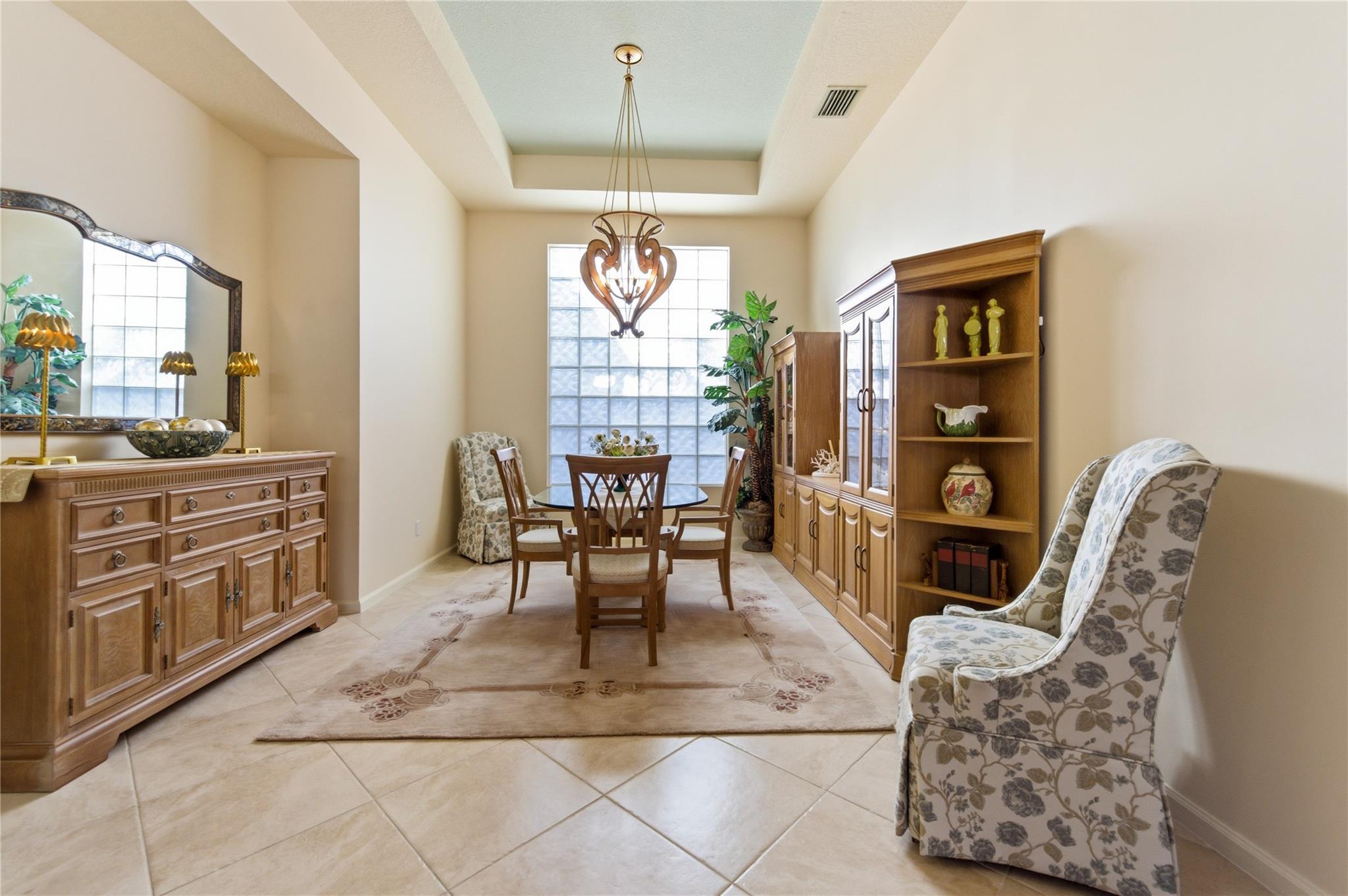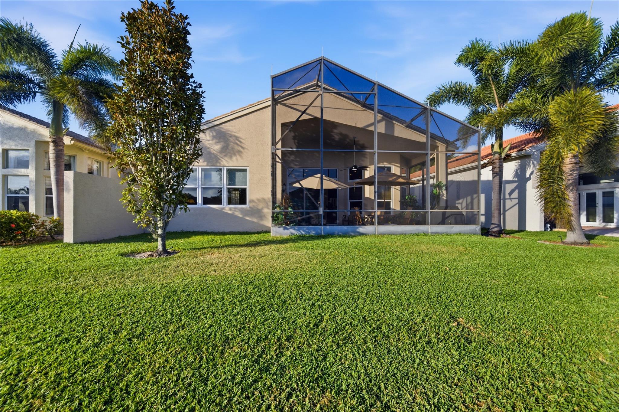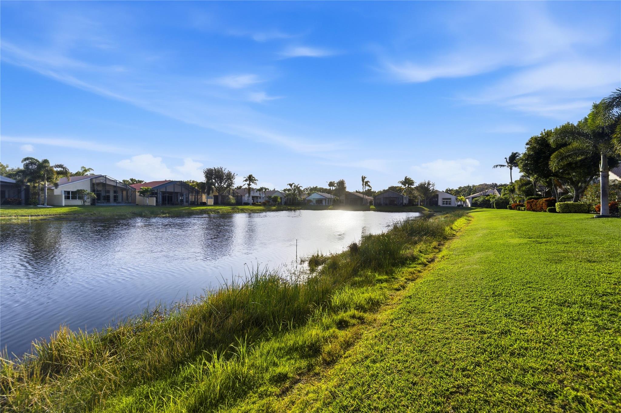 Welcome to 2321 sq ft of luxurious living in this 2 bedroom, 2.5 bath plus office/den. Freshly painted and enhanced with NEWLY INSTALLED IMPACT WINDOWS AND DOORS, this beautiful home offers both elegance and peace of mind. The spacious kitchen is a chef's delight, featuring solid wood cabinetry, convenient pull-out drawers, a walk-in pantry, and stunning granite countertops. The adjoining family room and breakfast area create the perfect setting for casual gatherings or relaxed everyday living. Step outside to your private tropical lanai and enjoy tranquil water views. The expansive primary suite offers generous walk-in closets and a large en-suite bath. The formal living room and Dining room allow further space for friendly gatherings.