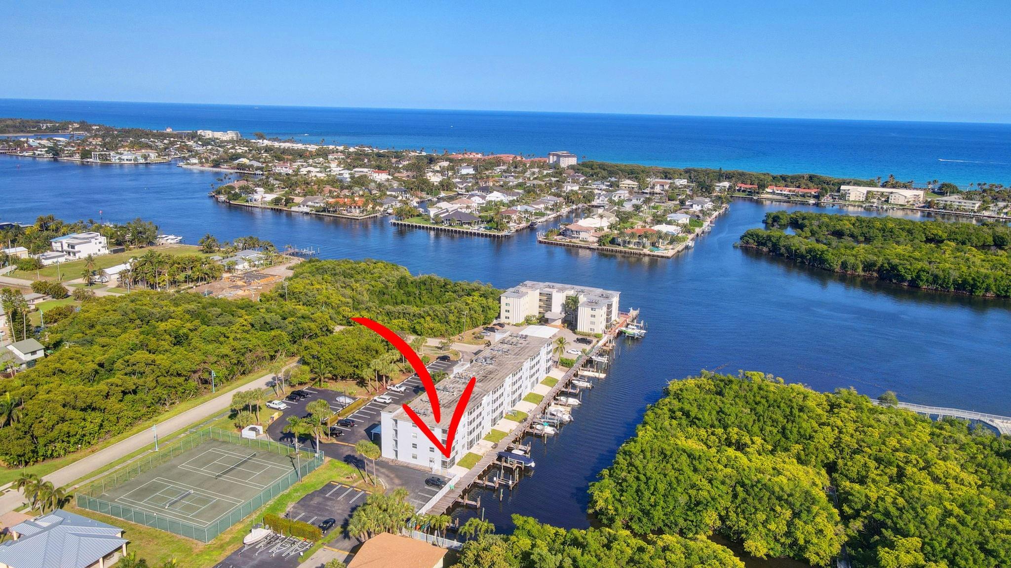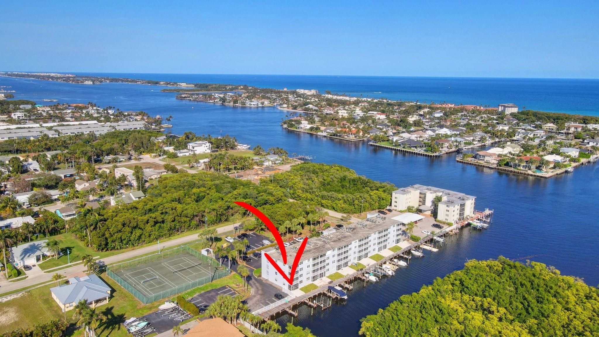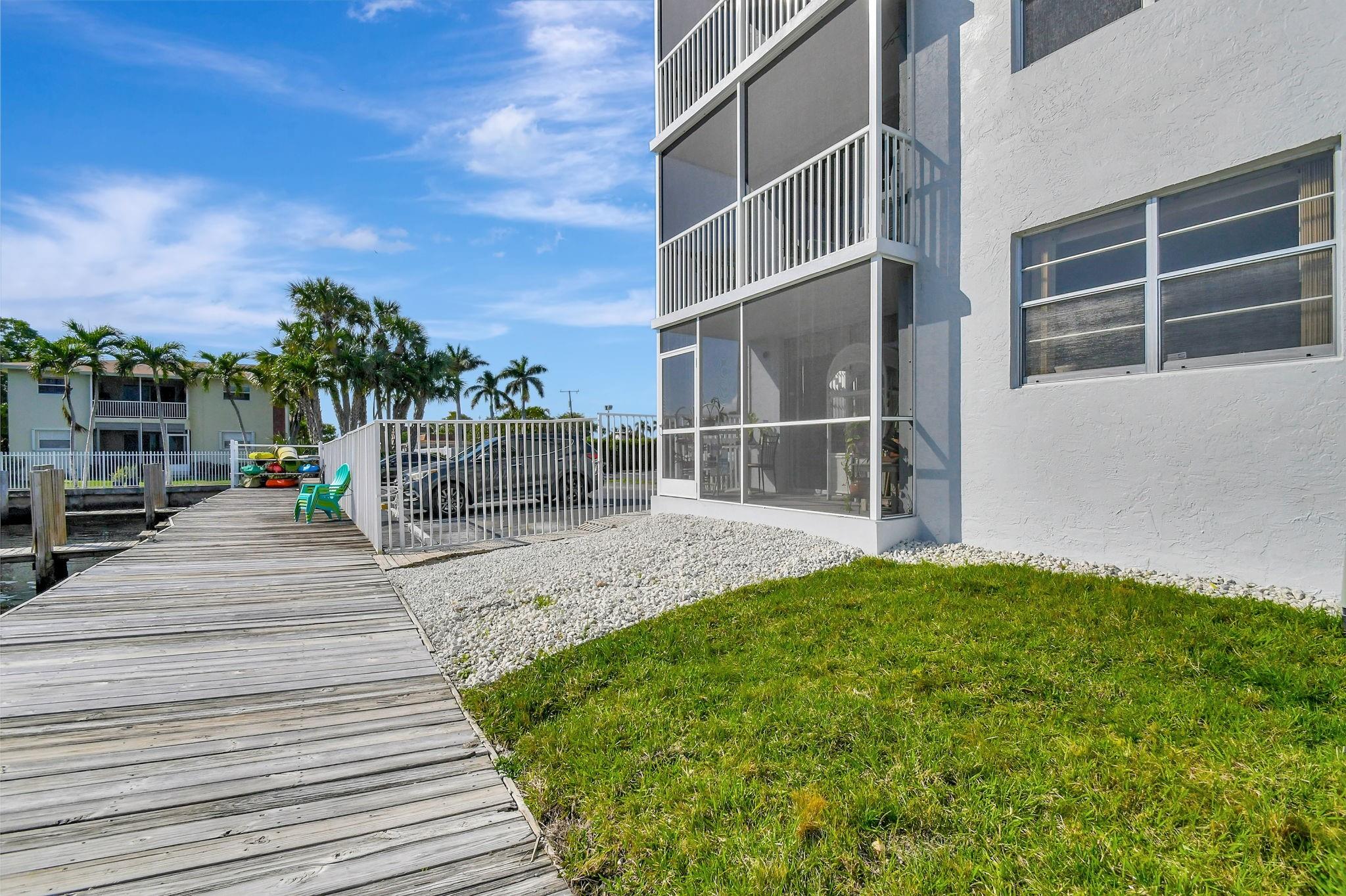 BOATERS DREAM!! Ocean access. Corner Unit and First floor convenience.. Step out your door to your deeded boat dock wi/ lift. Take a short boat ride or walk to restaurants, parks. Close to beaches and Trendy Atlantic Ave. Tennis courts, pool and newly renovated clubhouse. Beautiful Sunrises from the primary bedroom and your screened private patio. Corner unit has side windows that makes it light and bright. Kitchen w/ white cabinets, white appliances, new dishwasher, recessed lights and pantry cabinet, tile thru out living areas, new vinyl flooring in guest bedroom. Crown molding. Convenient first floor location with parking spot next to your condo. Washer/Dryer can be added. Some pictures are staged. actual pictures are also posted.