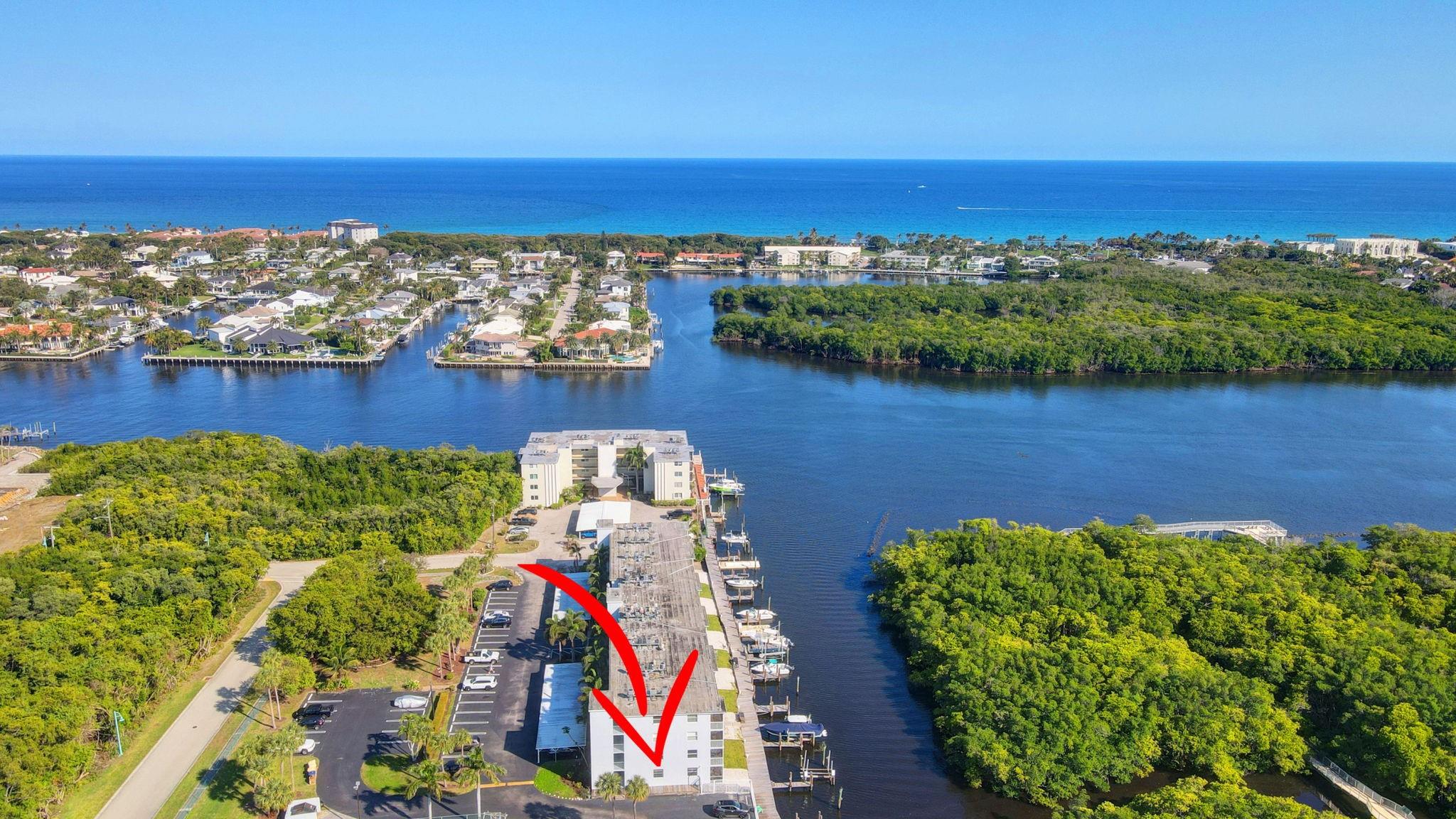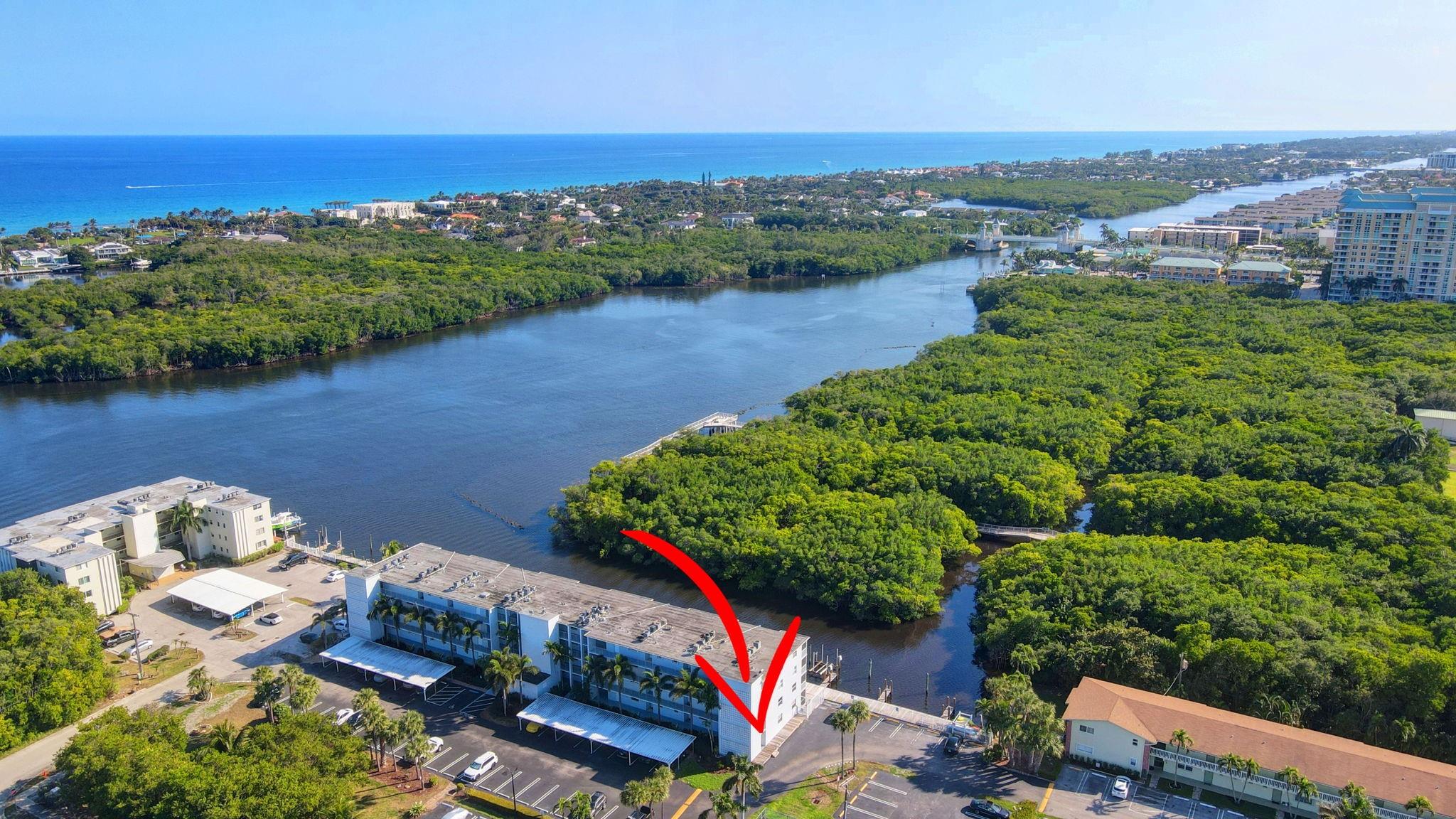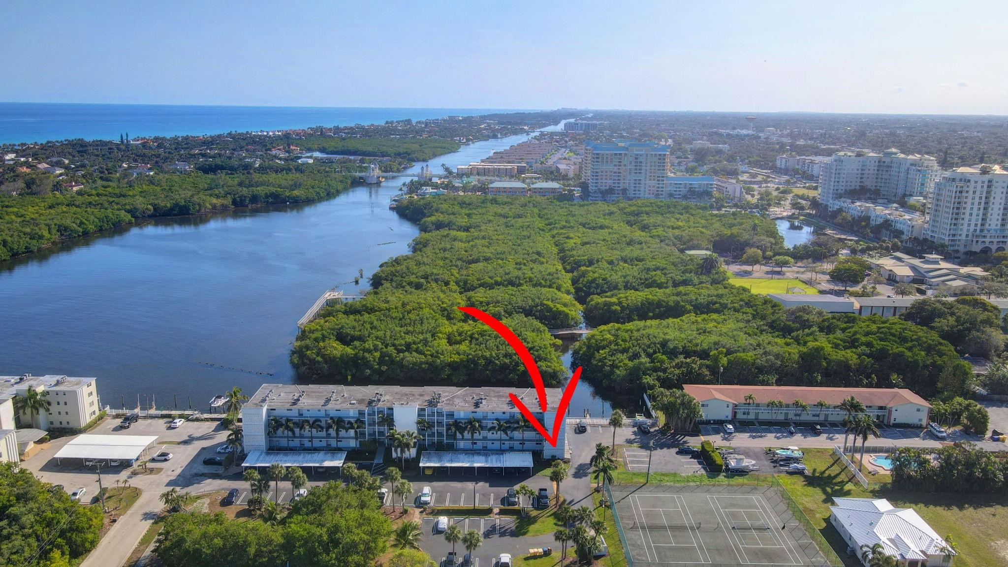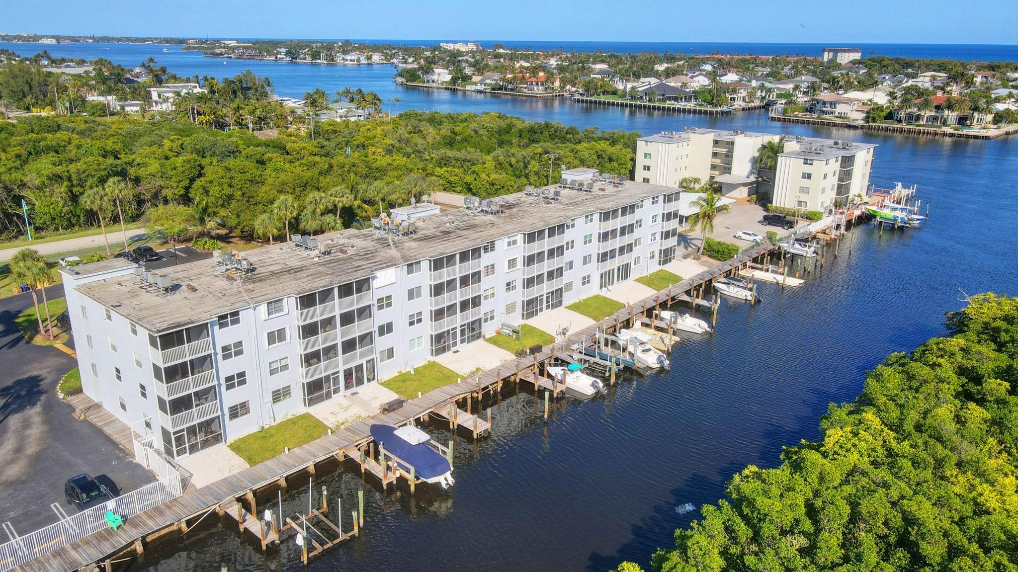 BOATERS DREAM!! Ocean access. Corner Unit and First floor convenience.. Step out your door to your deeded boat dock wi/ lift. Take a short boat ride or walk to restaurants, parks. Close to beaches and Trendy Atlantic Ave. Tennis courts, pool and newly renovated clubhouse. Beautiful Sunrises from the primary bedroom and your screened private patio. Corner unit has side windows that makes it light and bright. Kitchen w/ white cabinets, white appliances, new dishwasher, recessed lights and pantry cabinet, tile thru out living areas, new vinyl flooring in guest bedroom. Crown molding. Convenient first floor location with parking spot next to your condo. Washer/Dryer can be added. Some pictures are staged. actual pictures are also posted.