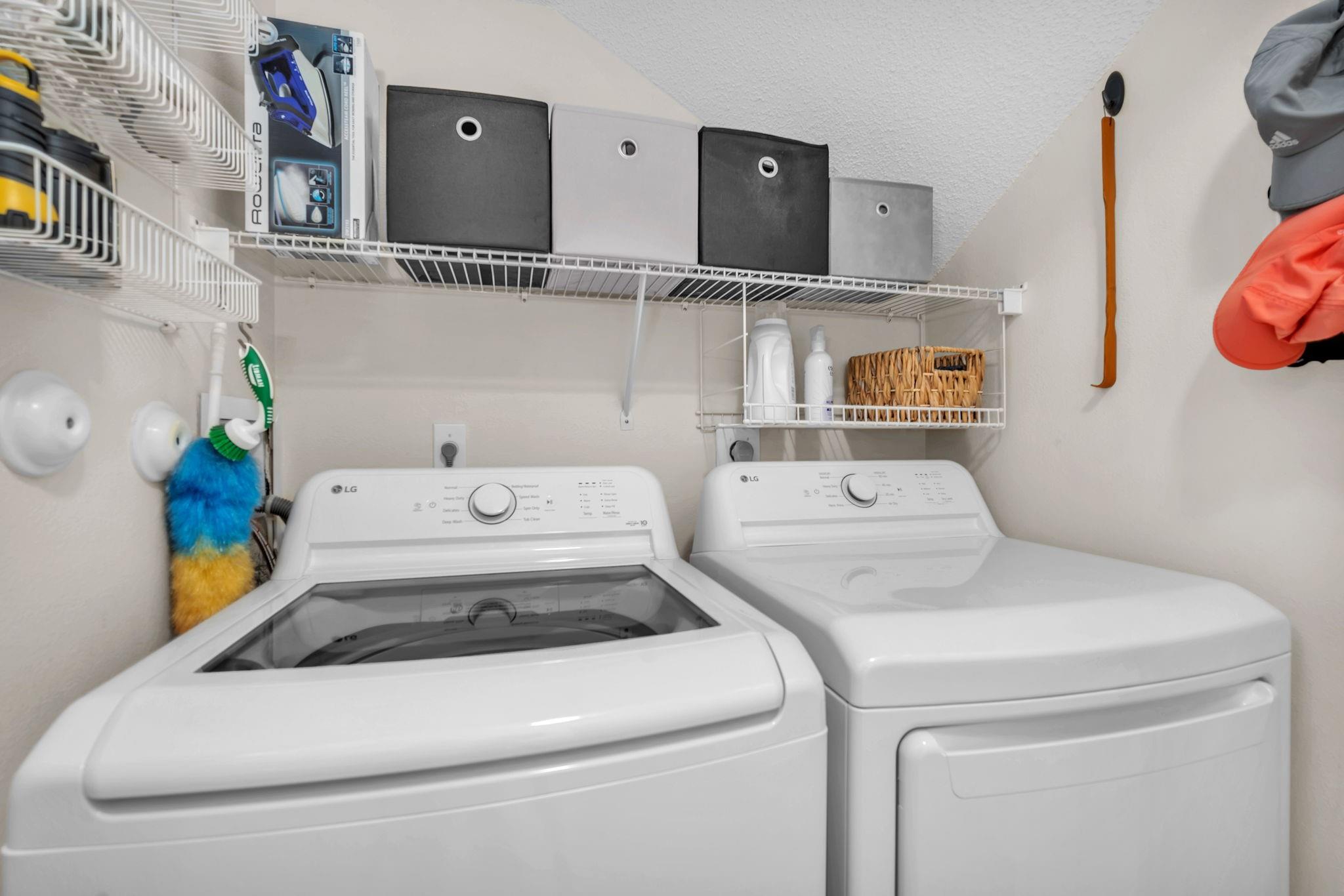 Welcome to this move-in ready 3 bedroom, 2.5 bath two-story single family located in the highly desirable Lake Charleston community. Featuring impact windows, gorgeous new laminate flooring upstairs & freshly painted this home offers both value & peace of mind. Open kitchen seamlessly flows to the family room & over looks private backyard oasis. 1/2 bath updated. Soaring ceilings create a bright, airy feel, with separate living & dining areas ideal for entertaining. Primary suite with tray ceiling, plantation shutters & 2 closets, bathroom with dual sinks. Low HOA fees include cable & high-speed internet, community pool, toddler pool, 3 playgrounds, pickleball & tennis, basketball & volleyball court. Located near the community pool, park, & Manatee Elementary. Zoned all A-rated schools
