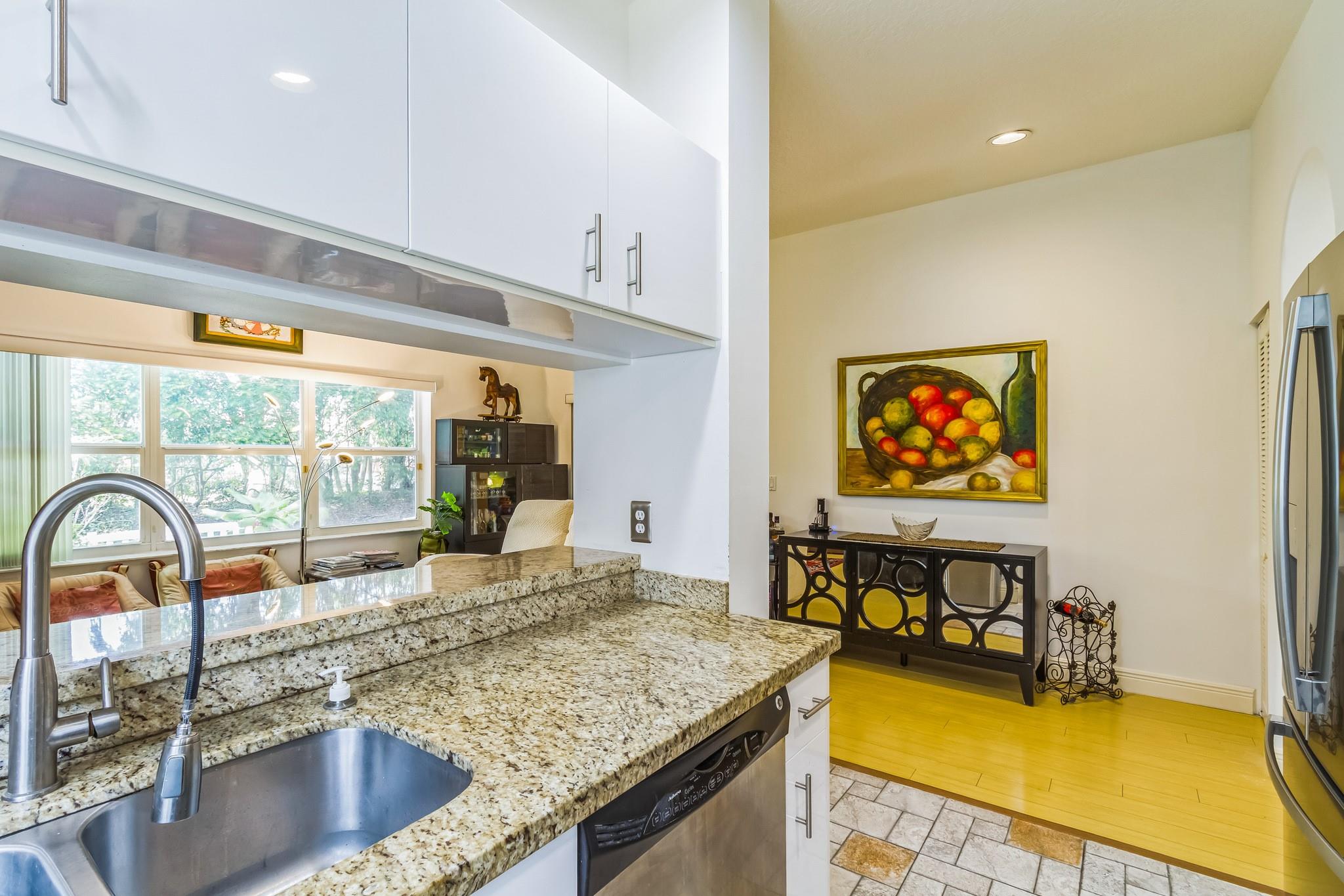 Supplements: countertops, vaulted ceilings plus impact-rated windows & garage door for peace of mind. Your spacious Master Suite features a walk-in closet and beautifully renovated Ensuite Bath w/dual-sink vanity, walk-in shower & soaking tub.A sunlit enclosed patio, also with impact glass, opens directly from the Master and offers the perfect space for a Home Office, Bonus Room,or serene retreat, separated from the family room area by elegant glass doors.The split Bedroom layout provides welcome privacy with the 2nd Bedroom & Guest Bath located at the front of the home. Separate Laundry Room w/closet and included washer/dryer. Community Perks Include: *Low HOA Fees (includes cable/internet/landscaping/roof cleaning/tree trimming/exterior painting) * Clubhouse w/large heated pool/fitness center/tennis/pickleball/dog park *Pet Friendly *Scenic walking paths perfect for your morning stroll or relaxing at the end of the day. Situated east of the Turnpike, you're just minutes to Delray Marketplace, abundant shopping, entertainment and restaurants. You'll enjoy easy access to everything you need living in one of Delray Beach's most convenient locations. Once you view this exceptional, move in ready home, you'll know you've found the comfort, community and lifestyle you've been wanting to call your own! Pre-Qualified Buyers with Documentation Only