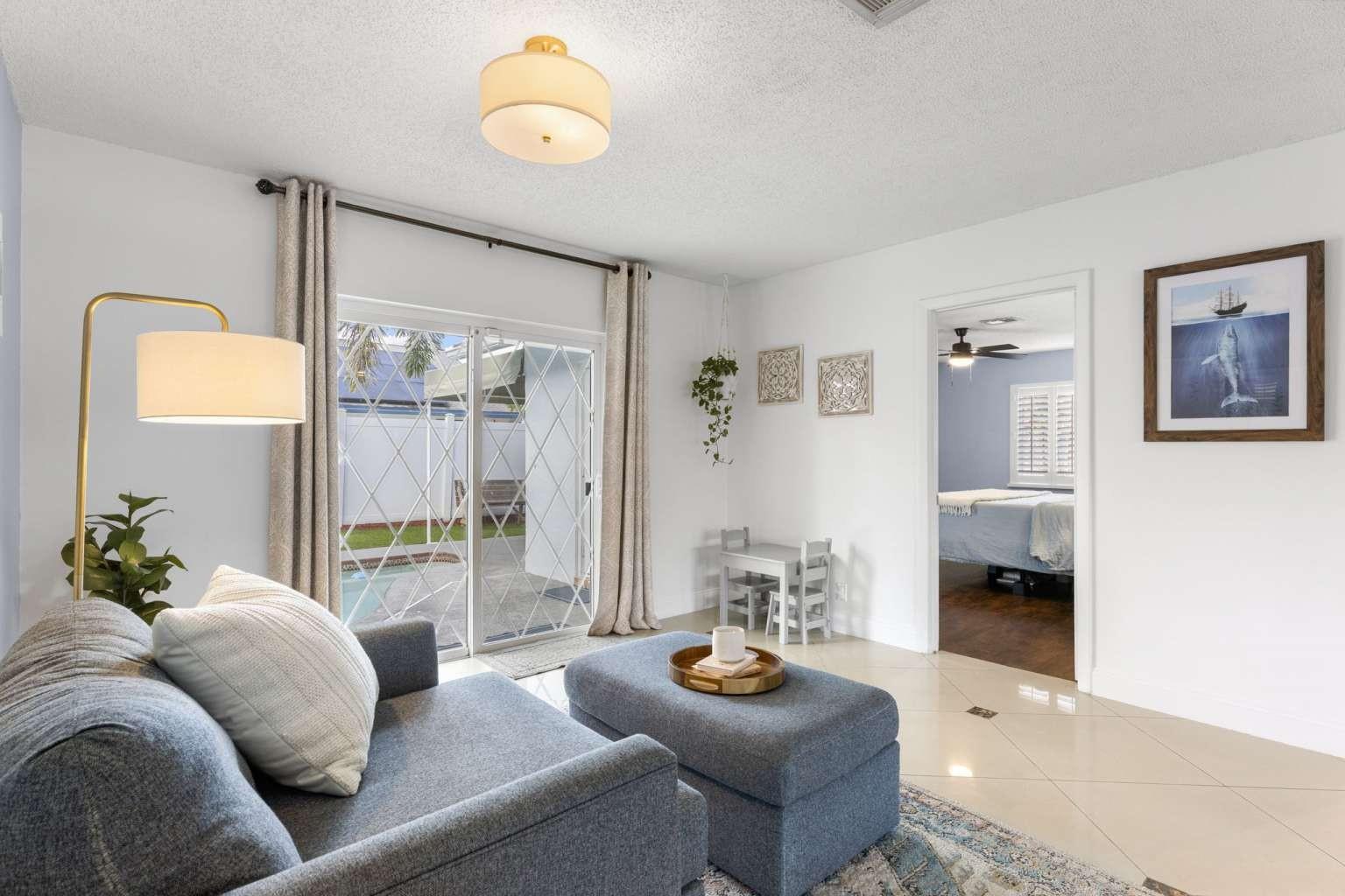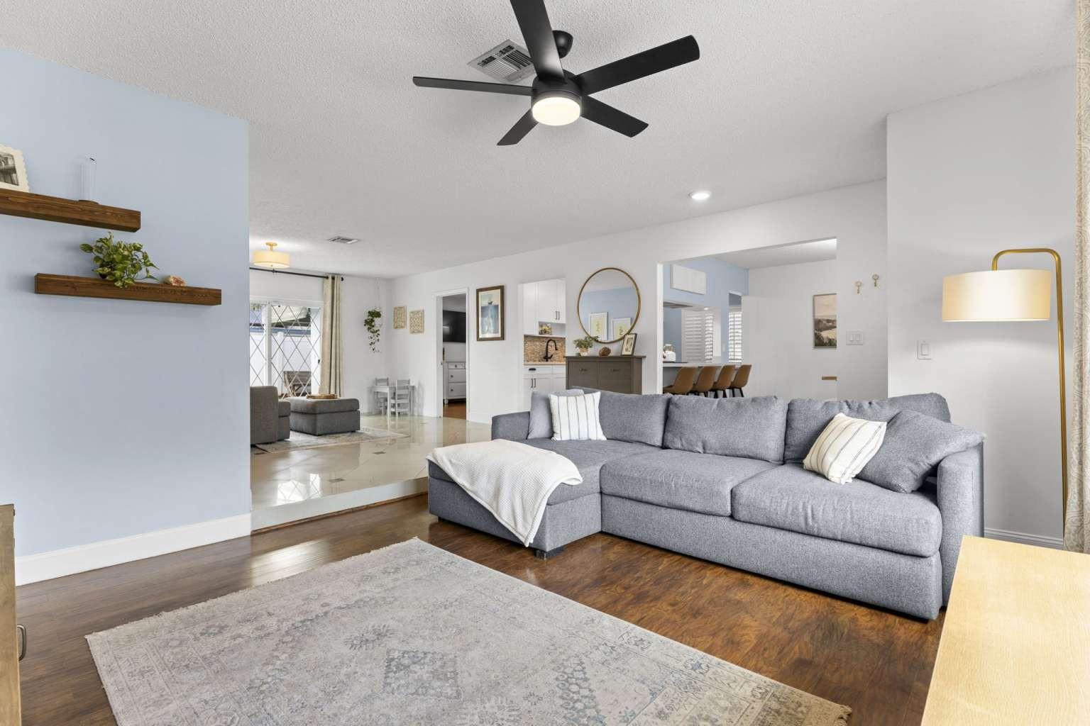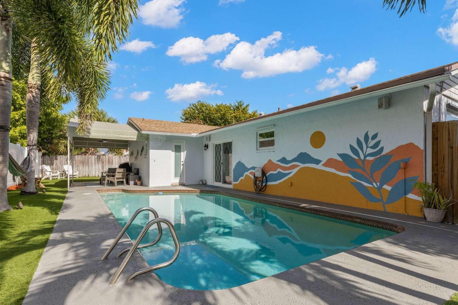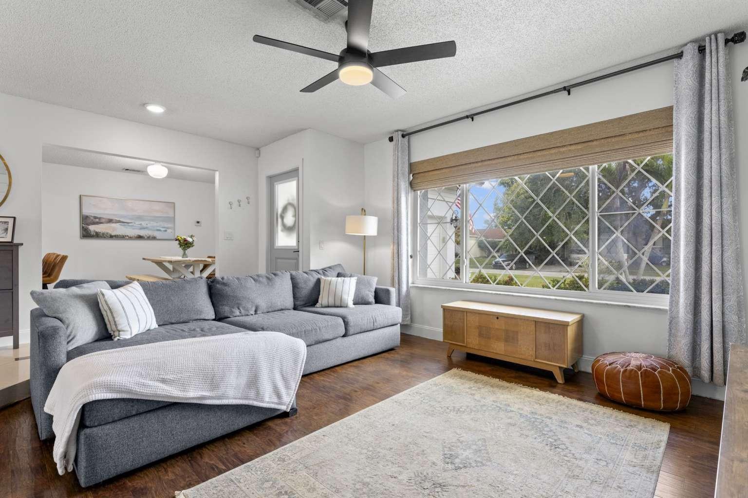 Beautiful 3-bedroom, 2-bath home with a pool in a quiet, small community a true hidden gem! Solid CBS construction with a bright, open layout featuring a spacious kitchen with breakfast bar, dining room, and multiple living areas. This home has been thoughtfully updated throughout, including beautifully updated bathrooms, a tankless water heater, accent walls, plantation shutters, and a new front door. Large bedrooms offer comfortable living. The covered patio and pool are complimented by a low-maintenance turf backyard, ideal for outdoor entertainment, play and easy upkeep year-round. Two-car garage with a large driveway offers plenty of parking. Low HOA at only $67 quarterly. Nothing to do but move in and enjoy!