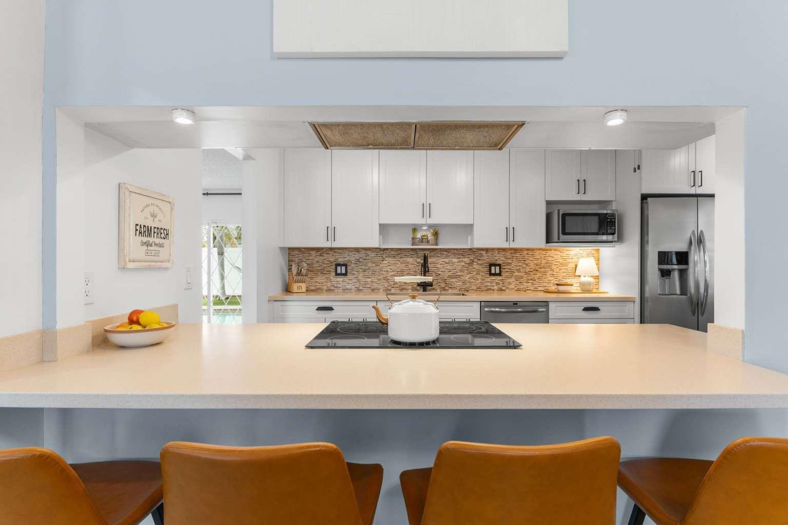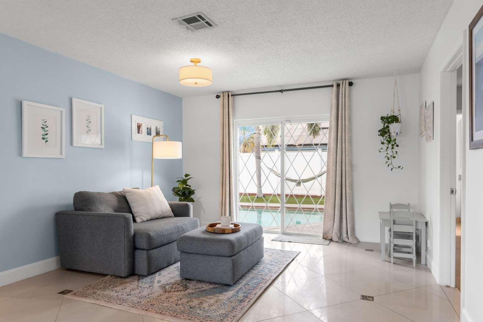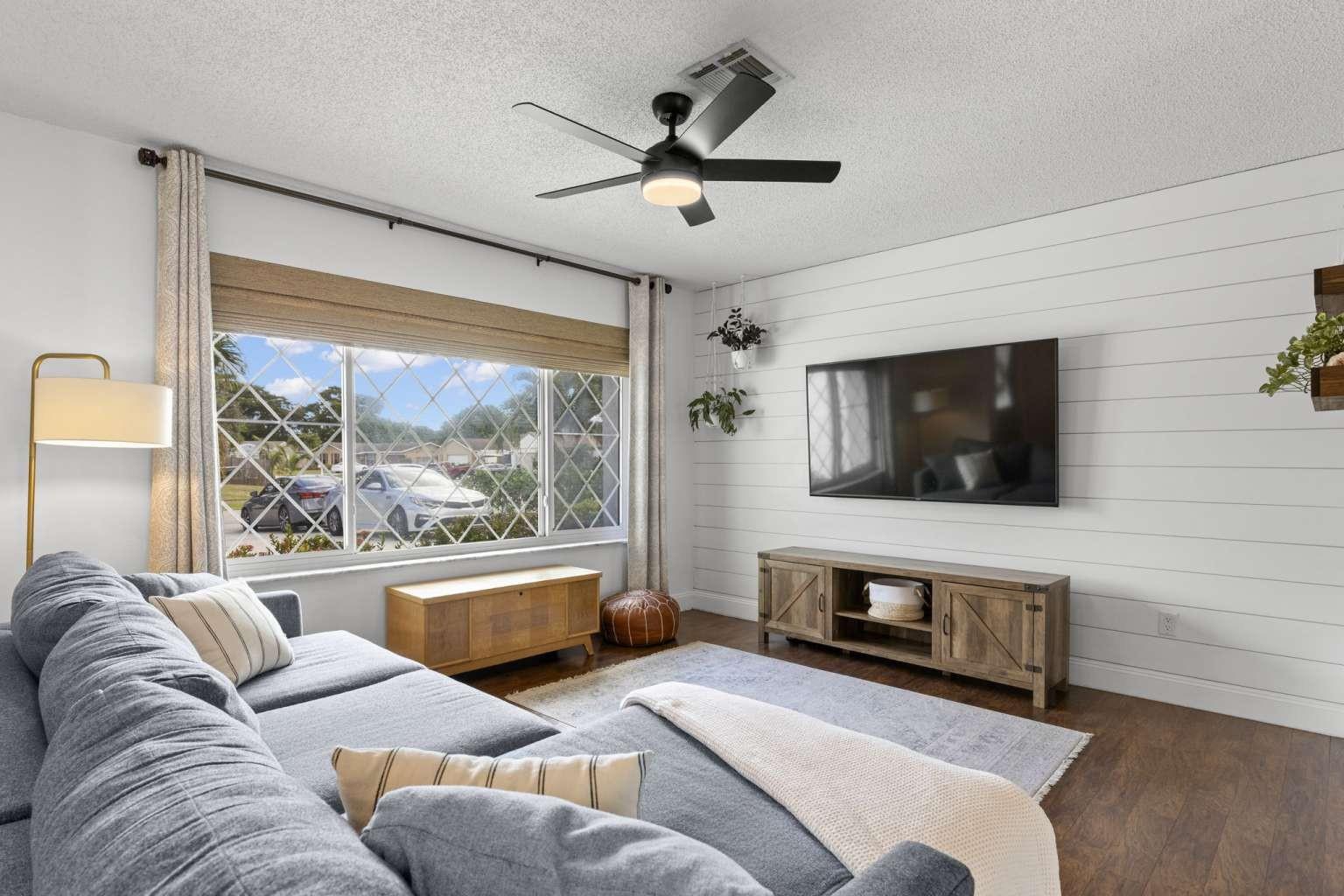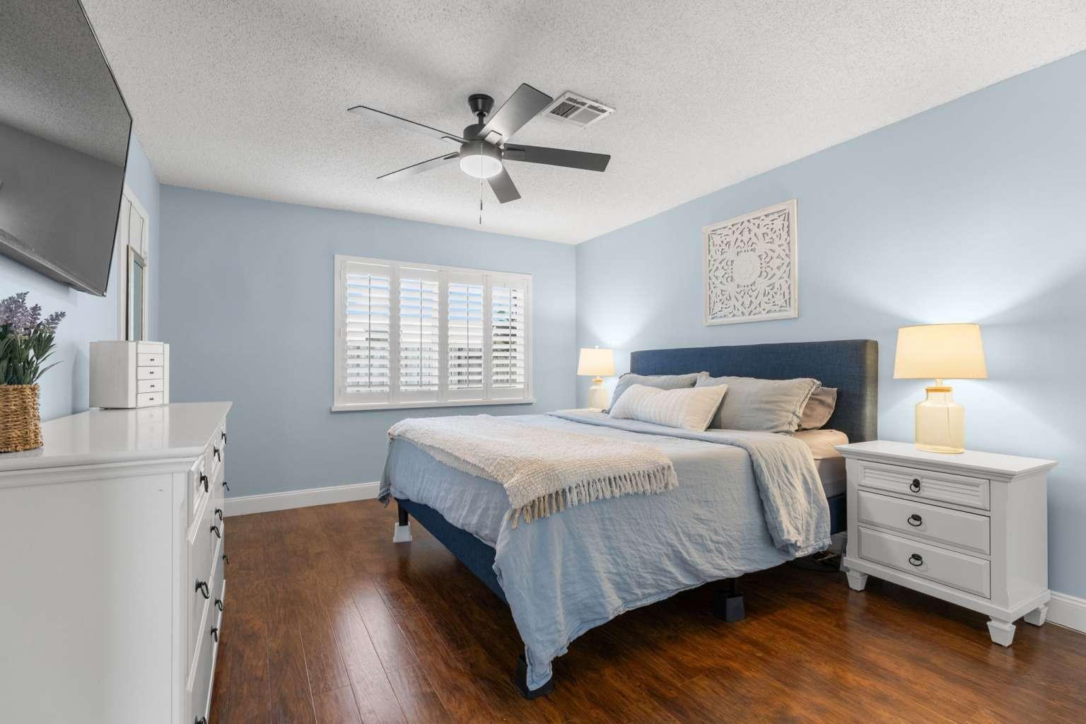Beautiful 3-bedroom, 2-bath home with a pool in a quiet, small community a true hidden gem! Solid CBS construction with a bright, open layout featuring a spacious kitchen with breakfast bar, dining room, and multiple living areas. This home has been thoughtfully updated throughout, including beautifully updated bathrooms, a tankless water heater, accent walls, plantation shutters, and a new front door. Large bedrooms offer comfortable living. The covered patio and pool are complimented by a low-maintenance turf backyard, ideal for outdoor entertainment, play and easy upkeep year-round. Two-car garage with a large driveway offers plenty of parking. Low HOA at only $67 quarterly. Nothing to do but move in and enjoy!