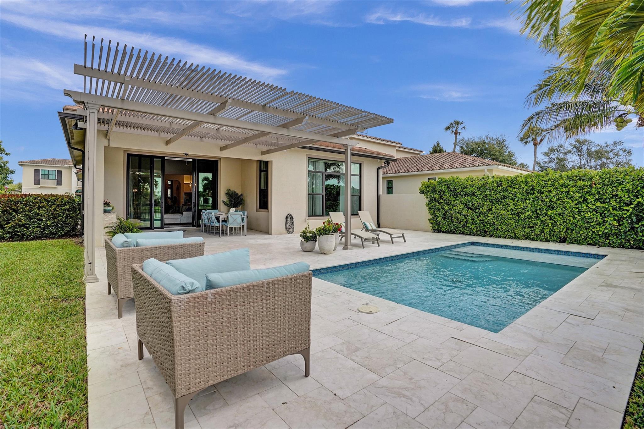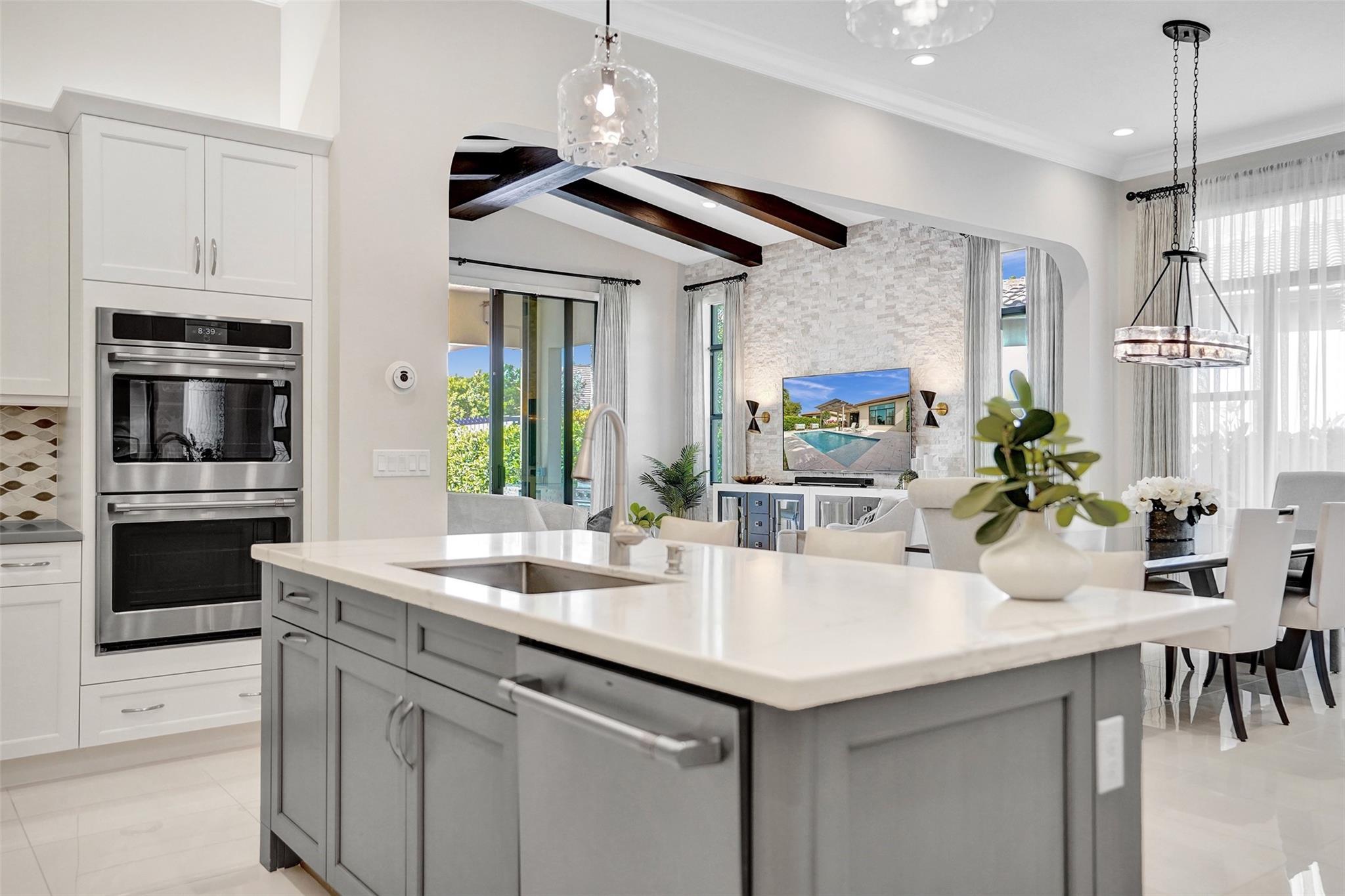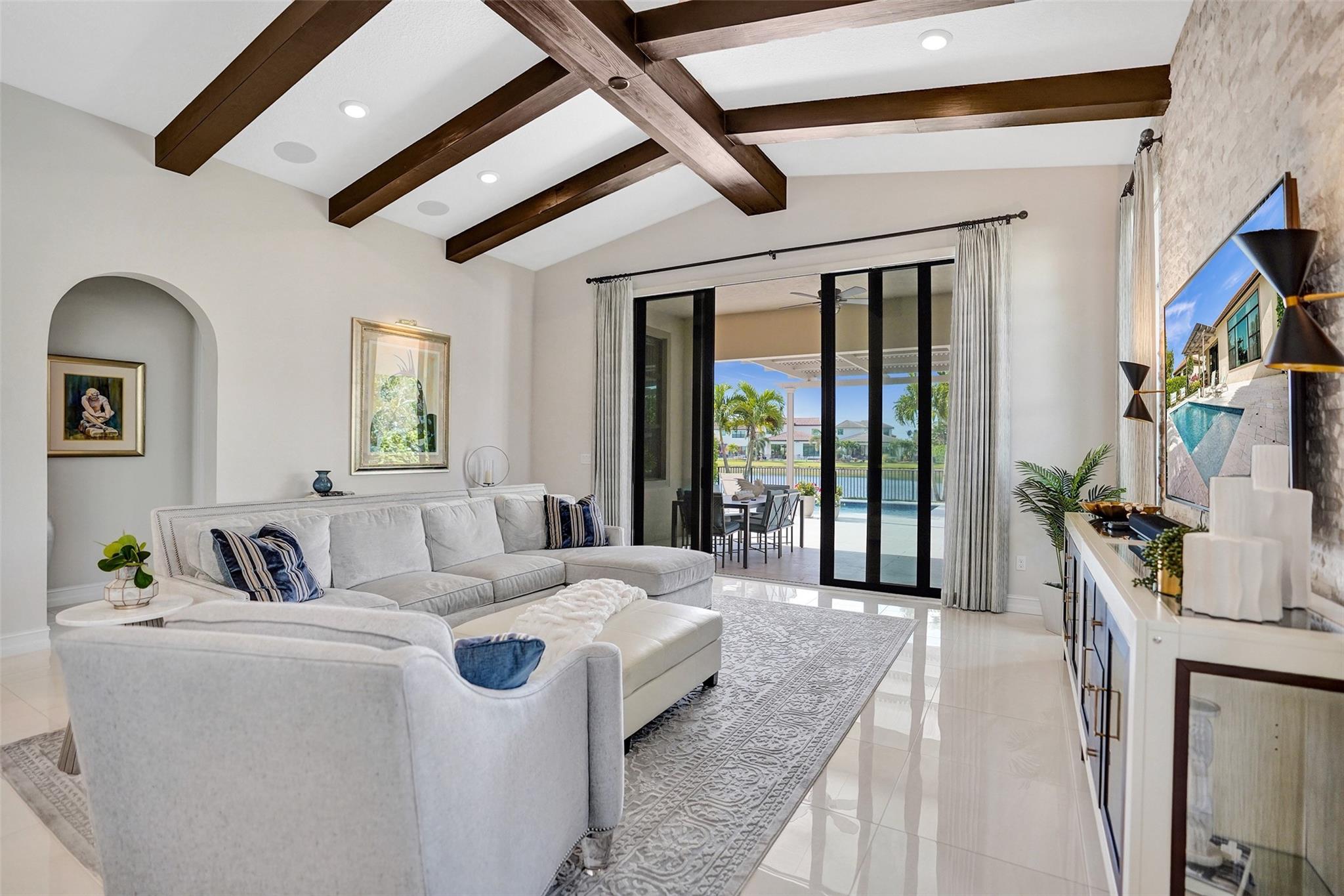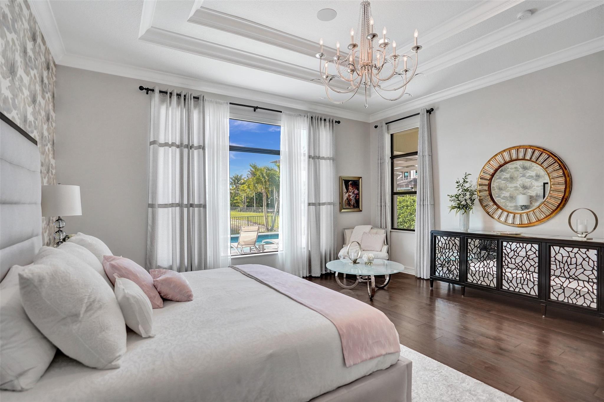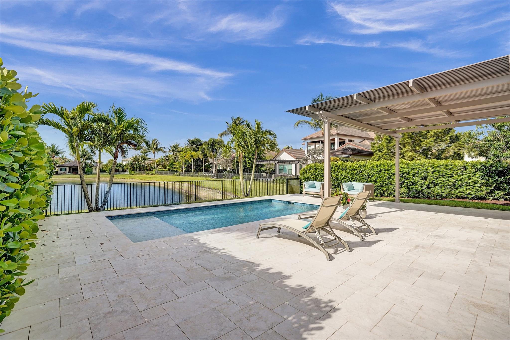 Luxurious 4-Bed, 4.5-Bath LAKEFRONT POOL Home, in GUARD GATED Community of PALM MEADOWS, boasts over 3,315 SQ FT of refined OPEN CONCEPT living space, SOARING CEILINGS and Designer UPGRADES throughout.KEY FEATURES ~13 ft VAULTED living room ceiling with WOOD BEAMS GOURMET KITCHEN ~8 FOOT QUARTZ ISLAND, GAS Range, DOUBLE OVENS, GE CAFE Appliances WALK IN PANTRY & 2nd Fridge Main Floor GRAND PRIMARY SUITE + 2nd main floor Ensuite Bed CUSTOM CLOSETS, MARBLE Feature Wall, Built-in SPEAKERS, MOTORIZED BLINDS GENERATOR, Impact Windows/DoorsOUTDOOR OASIS SUN-SHELF POOL, LAKE VIEWS Large MOTORIZED LOUVERED PERGOLA OUTDOOR KITCHEN: GAS BULL GRILL & fridge MATURE foliage & LANDSCAPE LIGHTING2 Club Pools, Clubhouse,Tennis & pickleball, Gym, Kids Room & More!