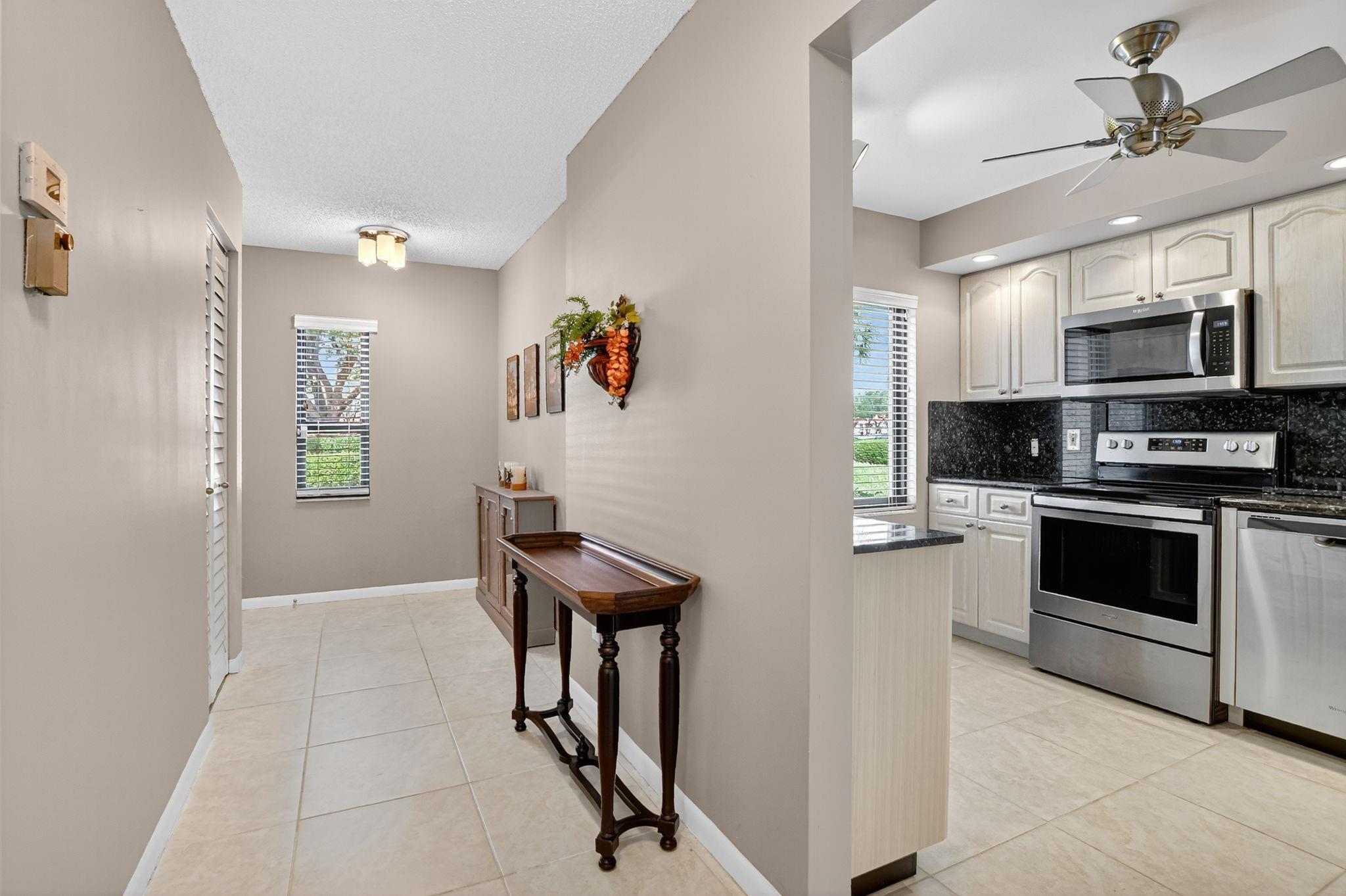 Luxurious living awaits in this beautifully appointed unit, perfect for a relaxed, active lifestyle. The gourmet kitchen features stainless steel Whirlpool appliances, ample counter space, and storage. Enjoy alfresco dining on one of two patios, including a rear enclosed patio. Impact glass protection and basic internet/cable are included. The unit is fully furnished and boasts resort-style amenities: community pool, clubhouse, and parking spot #1. Optional country club membership offers entertainment, hobby rooms, tennis, and more.