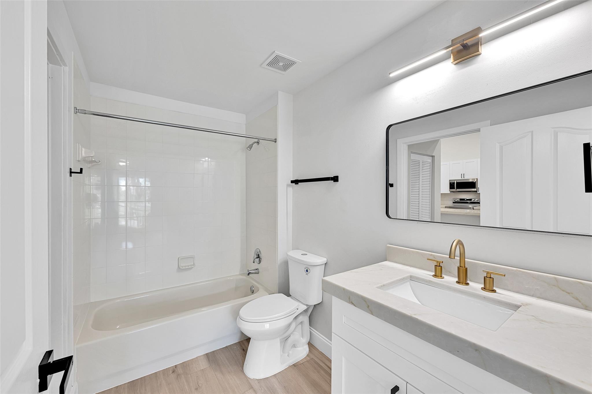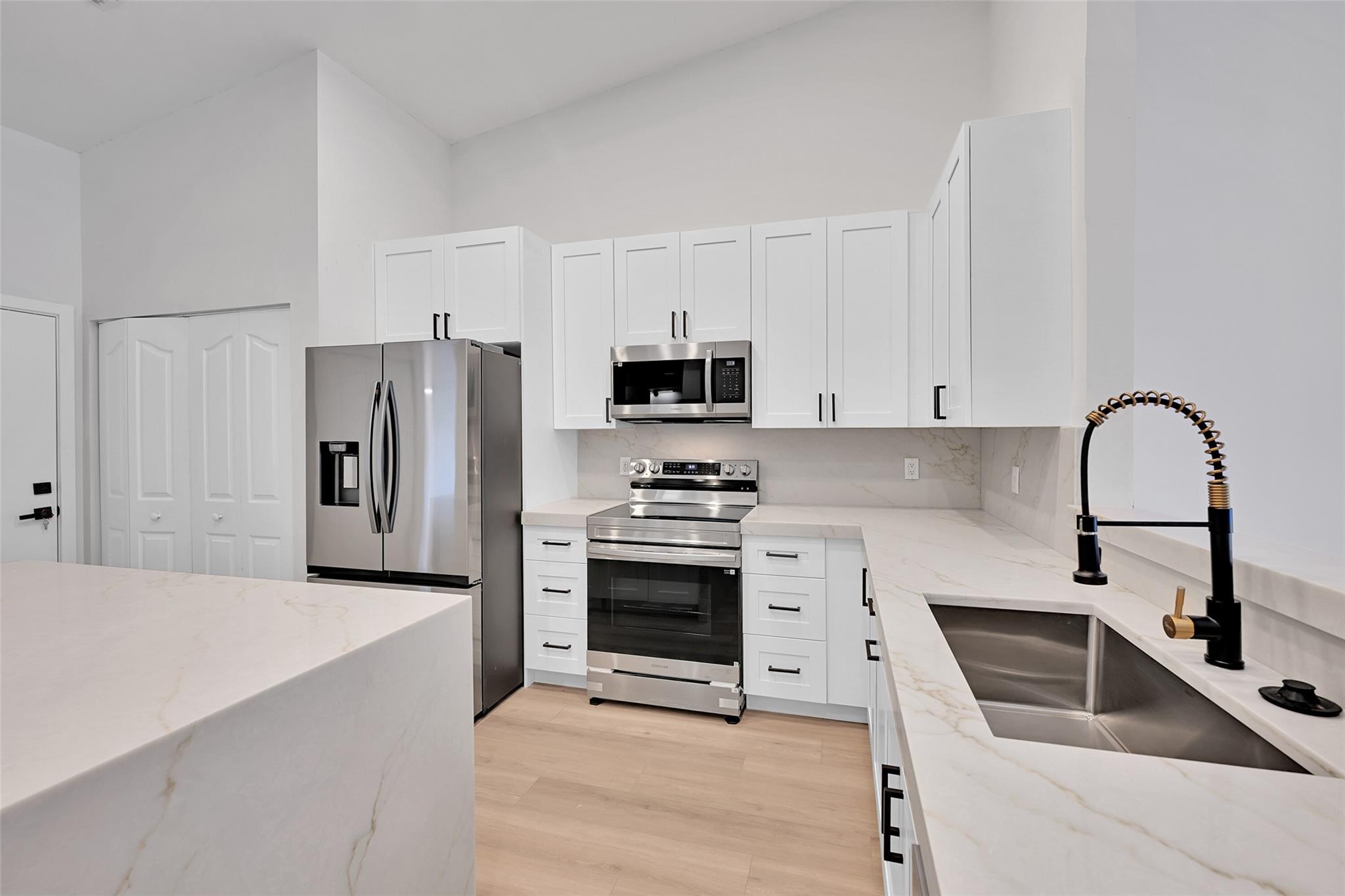 WOW, this beautifully done 2/2 villa with office/den features vaulted ceilings w/ LED high-hats & new luxury vinyl flooring throughout, hardwood cabinetry, an absolutely gorgeous open kitchen w/ large eat-in island, double thick quartz counters & stainless appliances. Walk-in closet, spacious living area, and large screened lanai. Venetian Isles amenities: clubhouse has a cafe-styled restaurant, rooftop sports bar, library, arts & crafts, card rooms, billiards & banquet room. Outside amenities: lighted tennis courts, pickle ball courts, newly renovated pools: main w/ lap lanes, resistance pool & hot tub. Also, a new state-of-the-art free standing workout facility. 55+ community. Must see to appreciate the details!