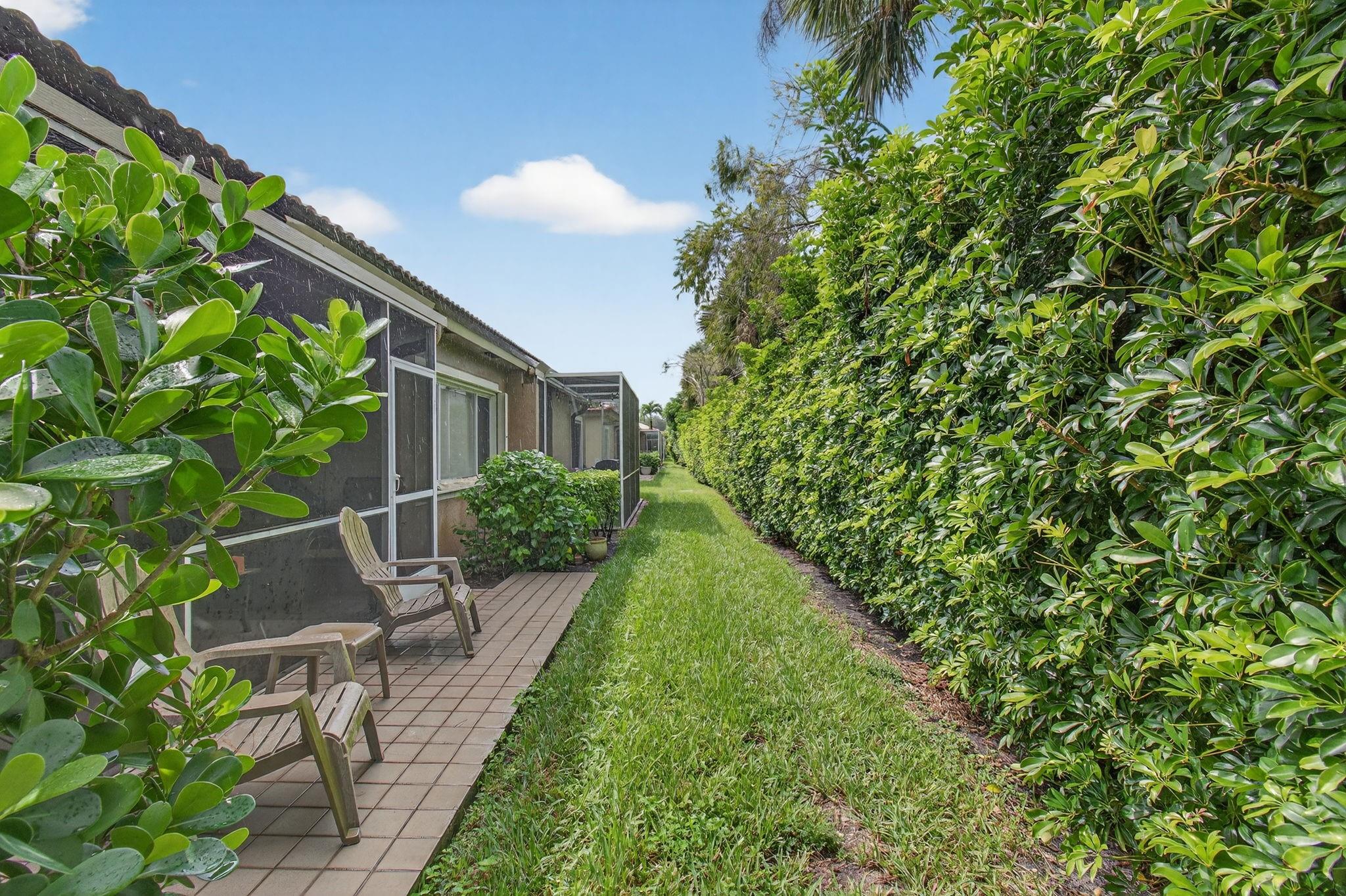 Gorgeous villa home, high-end custom redesigned in the exclusive & luxurious guard-gated Mizner Park. Exceptional yet affordable lifestyle. HOA dues $430 monthly. Experience soaring cathedral ceiling, thoughtfully redesigned & remodeled gourmet European-style kitchen with high-end custom cabinetry, soft-close drawers/pull-outs/lazy susan, display cabinetry, premium hardware perfectly complementing its elegant sense of spaciousness. Stunning granite countertops, a waterfall island, farmhouse sink. Every detail showcases quality craftsmanship, custom stone accent wall, polished 24x24 seamless-grout travertine marble floors, & real wood flooring in bedrooms. NEW roof (3 yrs), NEW gutters (3 yrs), NEW A/C (2 yrs). Roof repair/replacement, lawn care, trash, ADT security, and internet/cable.