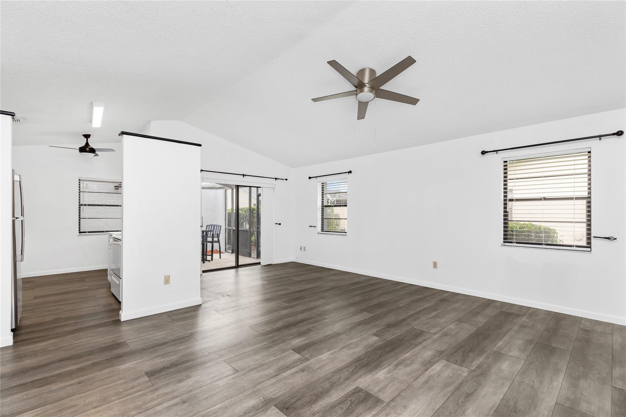 Don't miss this beautifully renovated Boca Raton villa with designer finishes throughout.This light-filled home features laminate flooring, an updated kitchen with solid surface countertops, subway tile backsplash, and stainless-steel appliances. Vaulted ceilings enhance the open feel, while the new window treatments and private screened patio offers a perfect space to relax. The primary suite includes a spa-inspired bathroom with a freestanding double-sink vanity and a striking shower with sliding barn-style glass doors, large rectangular tile walls, and glass tile accents. The second bath features a freestanding vanity, full-length glass tile accent wall, sliding glass shower doors, and oversized tiled walls. Community amenities include a pool and clubhouse.