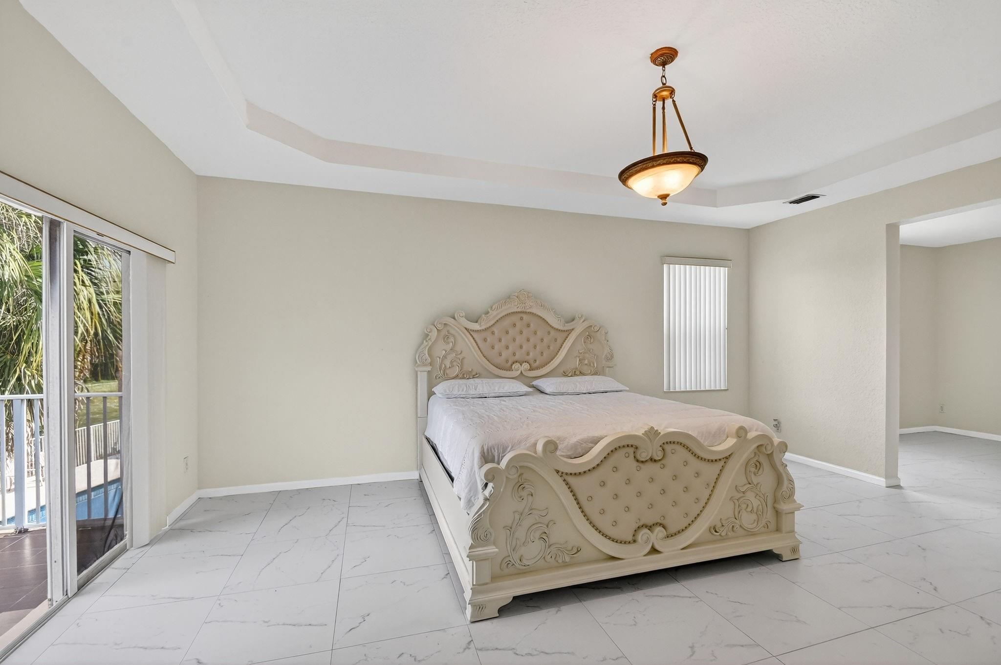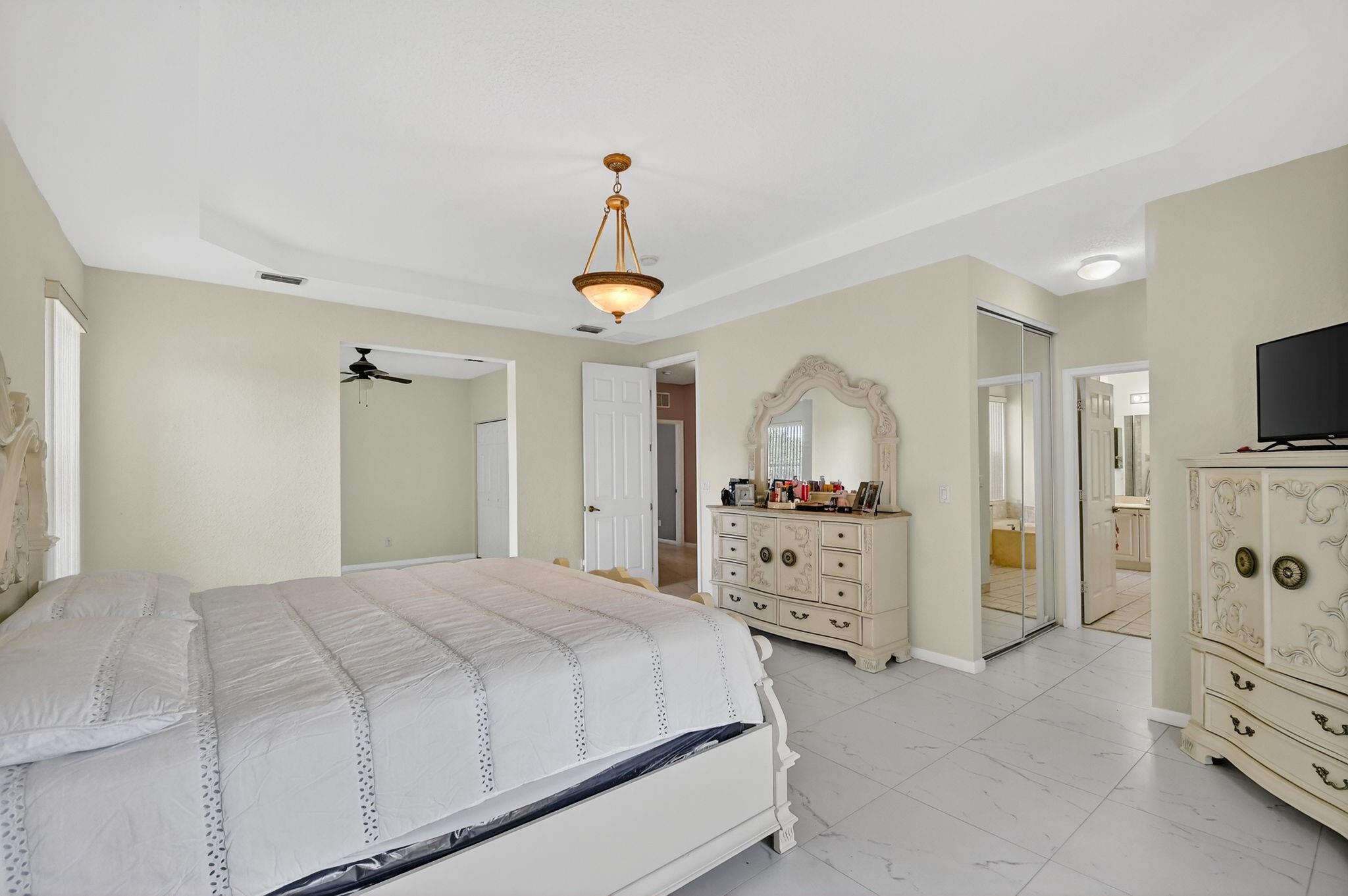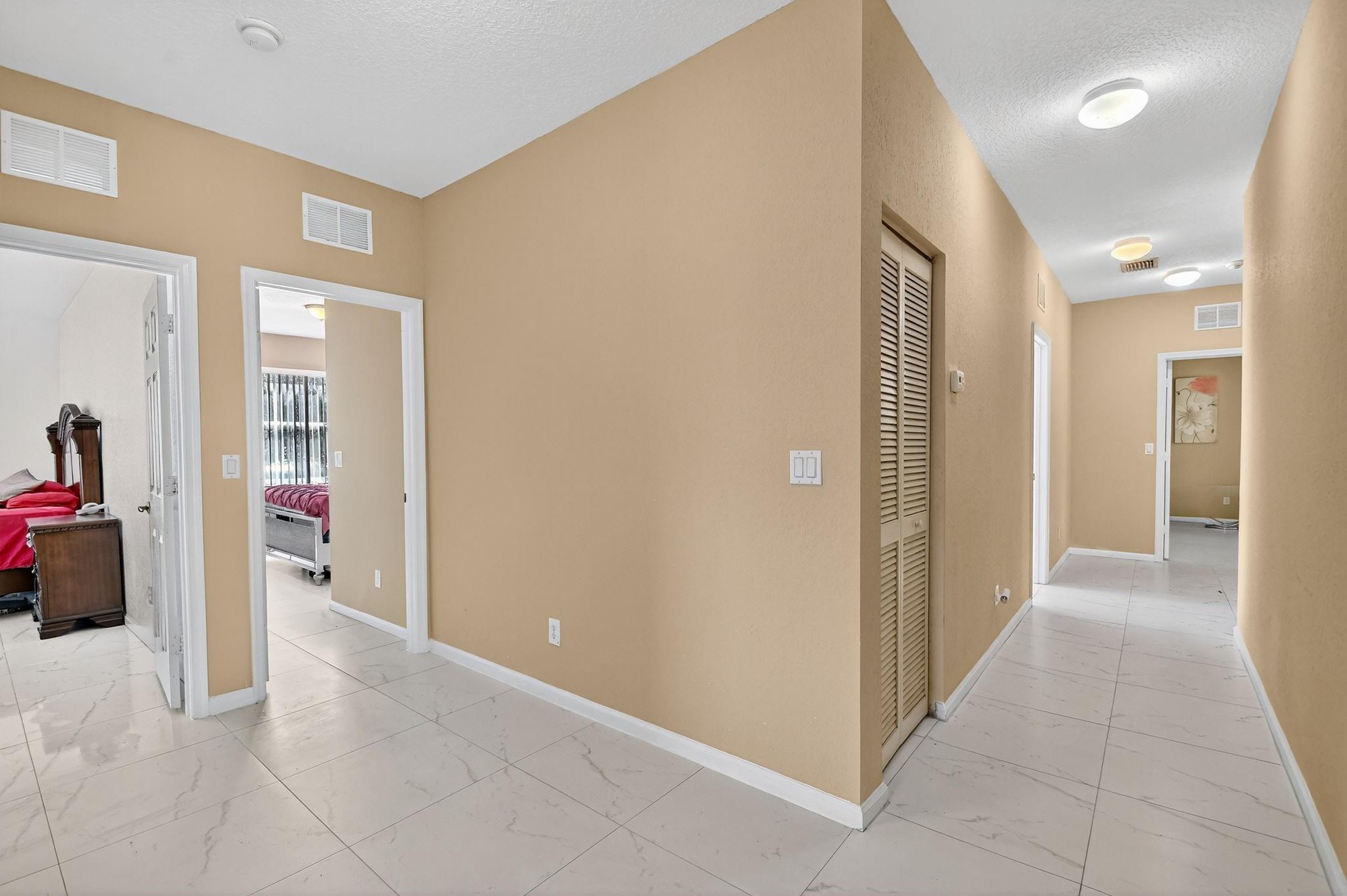 RARE FIND IN SAVANNAH ESTATES! Exceptional 7BR/5BA home on private 0.20-acre corner lot with NO rear neighbors - incredible potential awaits! Grand foyer features soaring 22-foot ceilings making a stunning first impression. Spacious family room pre-wired for projector and surround sound, perfect for entertainment. Primary suite includes private balcony retreat. Recent upgrades: brand-new 2024 aluminum roof, extended patio for outdoor living, and new tile plank flooring in two bedrooms. Lush landscaping includes avocado, guava, yucca, and coconut trees. Exclusive gated community of only 140 homes offers security, low HOA fees, family-friendly atmosphere, and proximity to top-rated Lake Worth schools. Strong investment potential in this desirable neighborhood. Schedule your private showing!
