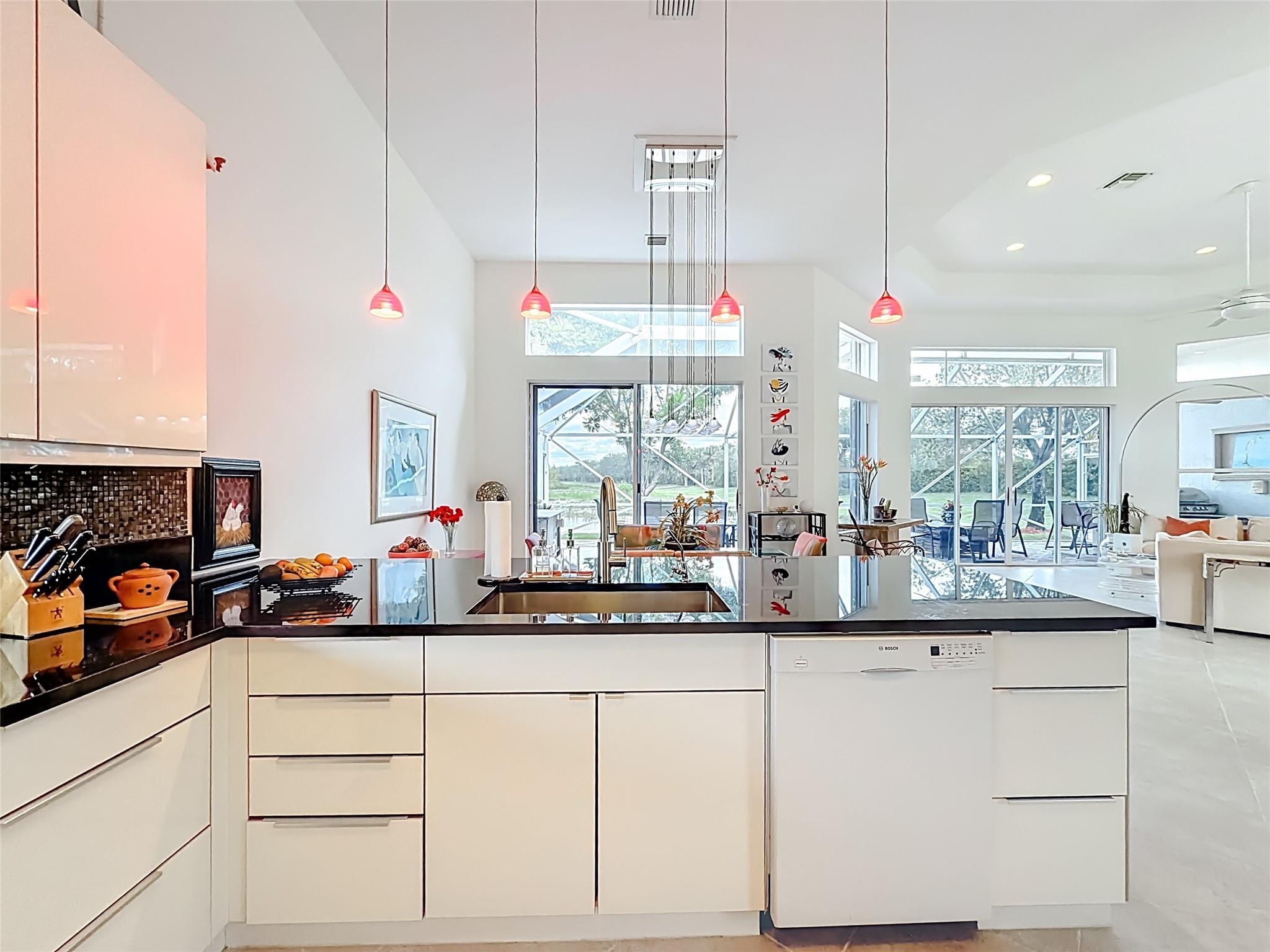 This home was purchased when built and the owner had custom changes made making it total open concept in the living area and some other surprises likely not seen in other homes. It has 2 full bedrooms + another bedroom that's a sitting room now and only needs an armoire + another room that's a den, craft room, grandkids playroom.The view when you walk thru the front door is of the lake and no neighbors behind you. They sliding glass doors are throughout the entire living space opening to an expansive screened patio with a built-in barbeque grill. This home is tastefully decorated and much of the furniture is negotiable. DON'T MISS SEEING THIS ONE!!